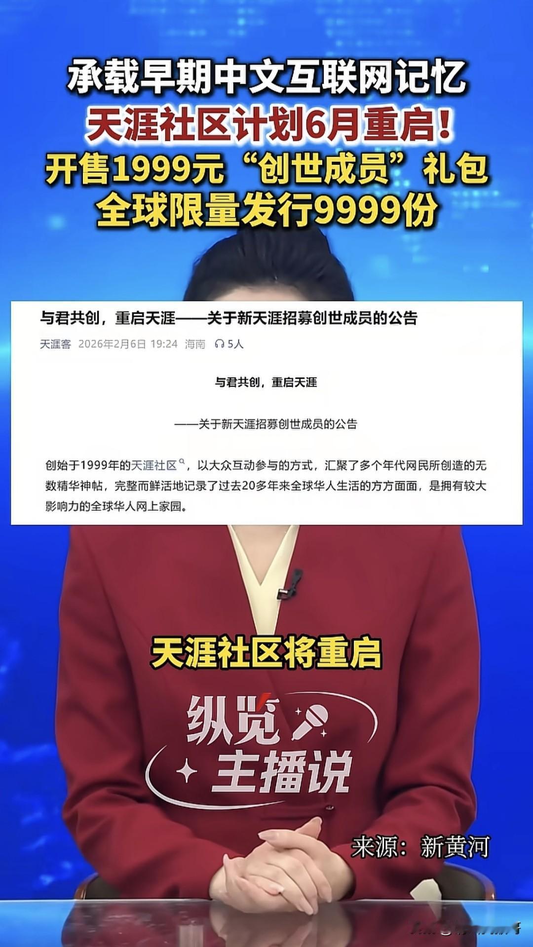 网上传来天涯社区重启的消息,这个承载了早期互联网记忆的论坛,早期口碑是相当好的,但对此很多人都有疑问。首先论坛重启后以前的数据还在吗?其次是论坛是否还能恢复往日“百花齐放、百家争鸣”的盛景,最后就是这个1999元的“创世会员”礼包,还没开放就预售,给人的感觉就是普通会员很多权限会被限制,这样的模式是否有利于论坛的良性发展。还是让我们拭目以待吧!