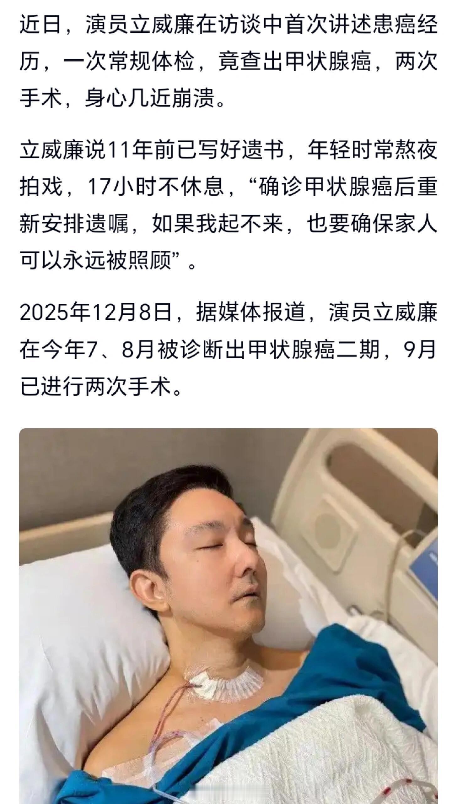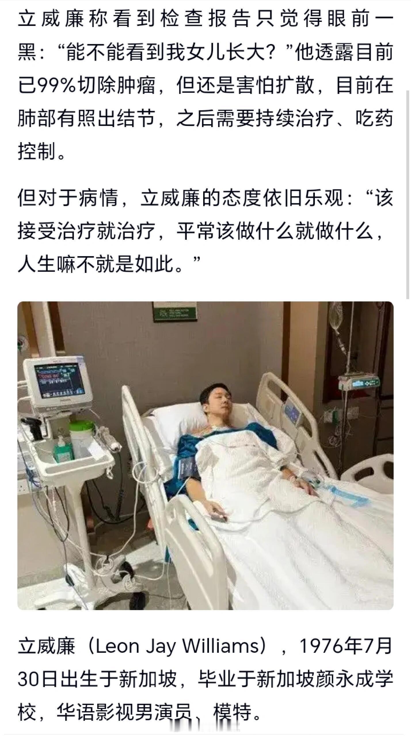 演员立威廉:身心几近崩溃,已重新安排遗嘱