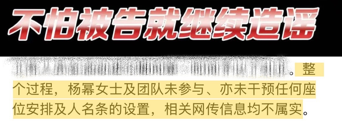 微博之夜声明 再次强调:整个过程杨幂及团队未参与未干预座位安排。针对用臆想造谣传播不实信息的肖战粉丝群体,杨幂工作室已针对全平台进行取证,将依法维护杨幂的合法权益到底,一切以事实为准!支持杨幂维权,请杨幂工作室取证不要停,就该强硬到底!