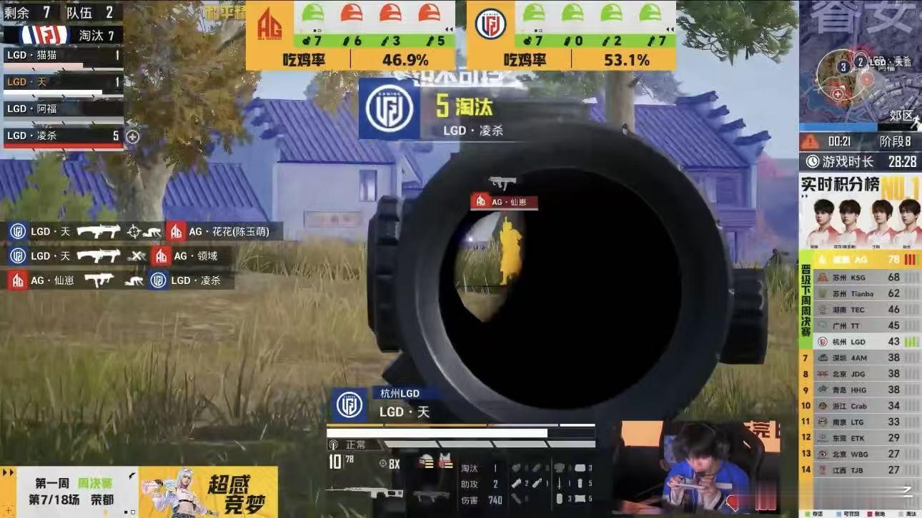 LGD满编开门红 漂漂漂LGD火力全开,今天开赛第一把直接满编吃鸡。和平精英职业联赛