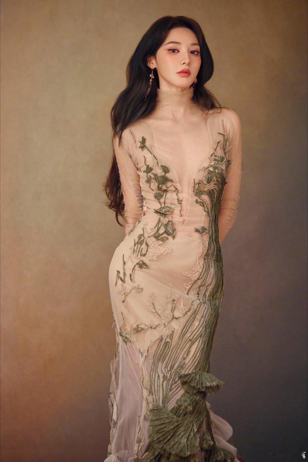 彭小苒深V开到肚脐 内娱又多一套封神造型!彭小苒深V礼裙大胆又高级,曲线玲珑有致,长发披肩眉眼精致,把清冷与性感拿捏得恰到好处,不是俗艳的性感,是自带仙气的媚骨
