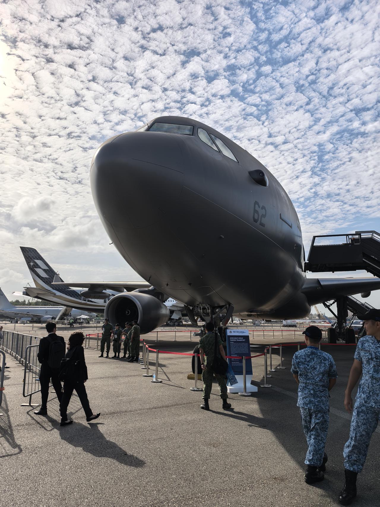今年新加坡🇸🇬航展是第十届了,也是我第三次来看,与以往比较这届最水。目前还没有报出成交金额,但从这几天客流量上看可以说是惨淡。再就是飞行表演水,开幕式上有八个批次飞演,第二天和第三天就缩水到四个批次,第四天没有安排!第三就是费用高昂,新加坡消费高不说,就这次航展门票就不菲,四天专业日300新元,摆渡车一天往返30新元,才多大个地方跑啊。最后说下静态展区,场地基本空了一半,展品放置太集中了,不利于拍摄,背景杂乱。特别是空军的f15&f16战机旁放置了登机梯,严重影响拍摄效果(图1)。记得往届都是好几架f15&16战机一起静展,这次真的缩水明显。[捂脸]2028年不想去了
