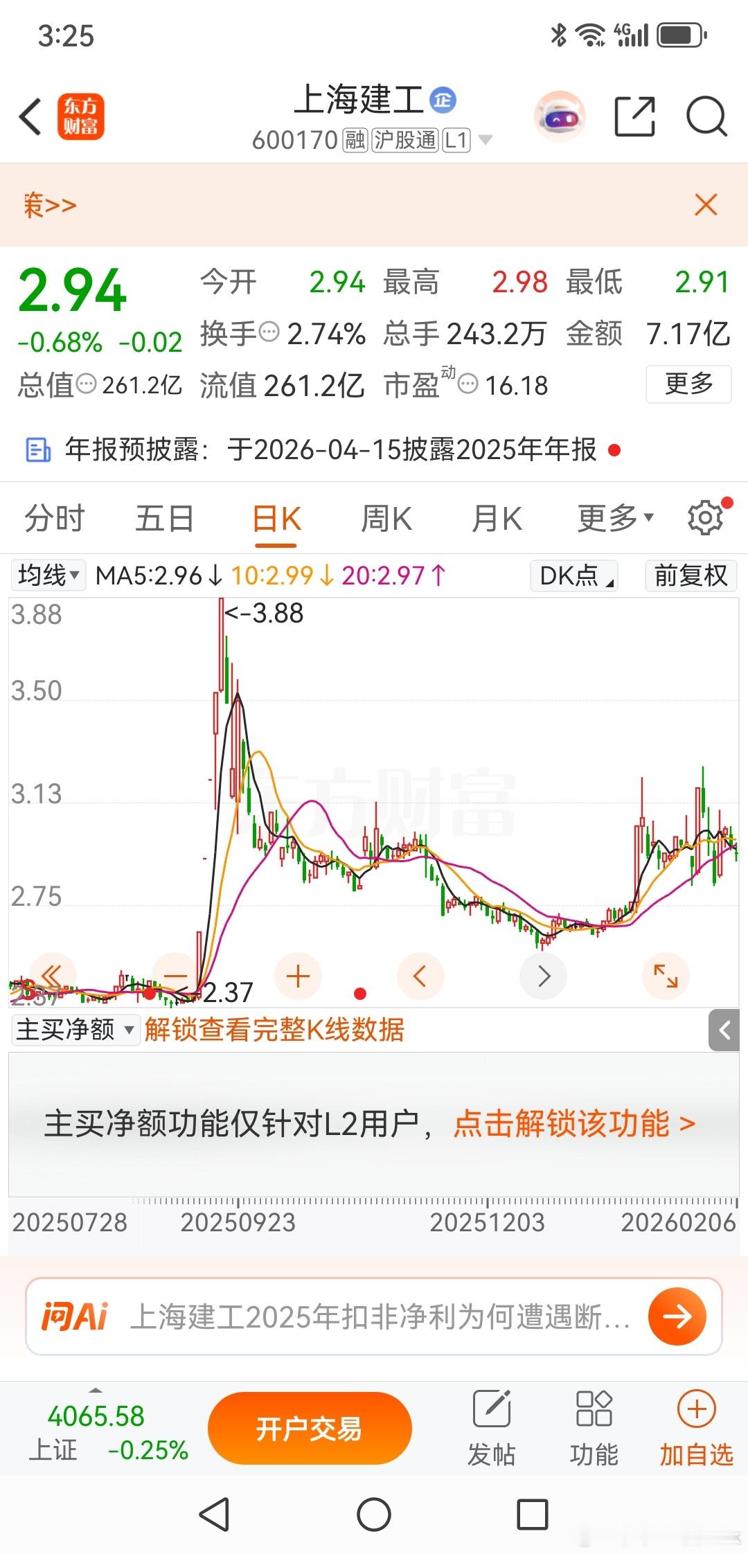 上海建工,这种票一定要远离上海建工,昨天有位网友问我,该股最近有些异动,你怎么看?我的回答是看都不应该看。低位有毒,从低位能够成功走出来的票是凤毛麟角,你千万不要价格低、位置低而买入,这个和在地摊上淘宝是一样, 不是一般人可以捡漏的。上海建工,这个票不要那个上海八十多岁的老爷叔,谁知道他。上海建工,25年9月份有过一波借着网红影响力的一波快速拉伸行情,但很可惜这是一个操作失败的案例。我认为进入26年以后的异动涨停,其实是机构派发尾货的行为,而不是重新上涨的开始。低位的股票,最好别碰,没有超级运气,基本上都会死在里面,你看看他的股东人数就很清楚了,全都是散户在里面等别人抬轿子。我一向反对买低位的股票,不是他不会涨,而是概率太低,即使你有幸选上,你也绝不可能拿的住。有机会就出来,你根本不可能赢,等建工爷叔的影响力散去,这个票去大概会回到2.5元下方昏睡百年。欢迎加入我们的免费交流群财经股票