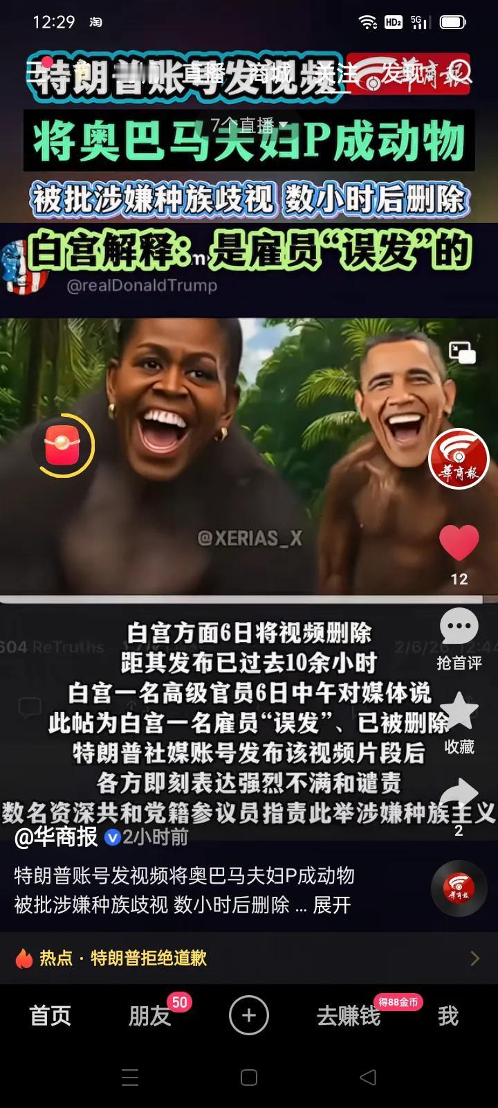 川普发帖:我是丛林之王*被批种族歧视也绝不道歉 *川普账号发视频,奥巴马夫妇变成了黑猩猩,拜登好像红鼻油猴……而川普自己则是威风凛凛的狮子王!狮王出场,百兽俯首帖耳。 结果民主、共和两党人员纷纷批评川普涉嫌种族歧视。 川普回应自己没有错,不会道歉。 *我想,也许谈不上种族歧视,因为这个模拟‘’动物世界‘’的视频,并不单单搞怪了黑人奥巴马,川普自己和拜登这两个白人也变成了动物。也算是一视同仁了。 其实美国人骨子里一直信奉弱肉强食的丛林法则,川普的这个小视频反倒是活灵活现地展示了美国人的价值观和生态链!