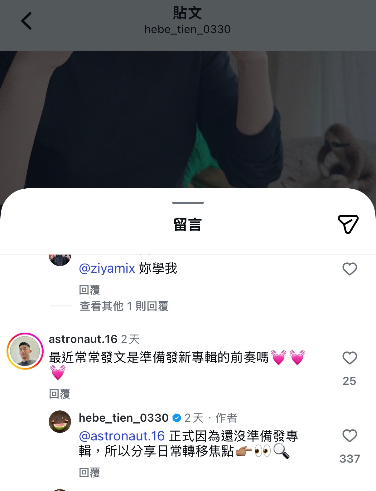 田馥甄最近发文给粉丝留言回复:还没准备发专辑