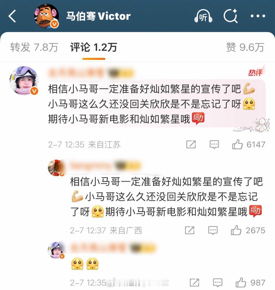 马伯骞回关虞书欣后续,虞书欣粉丝提醒马伯骞别忘了《灿如繁星》和《云初令》的包场,