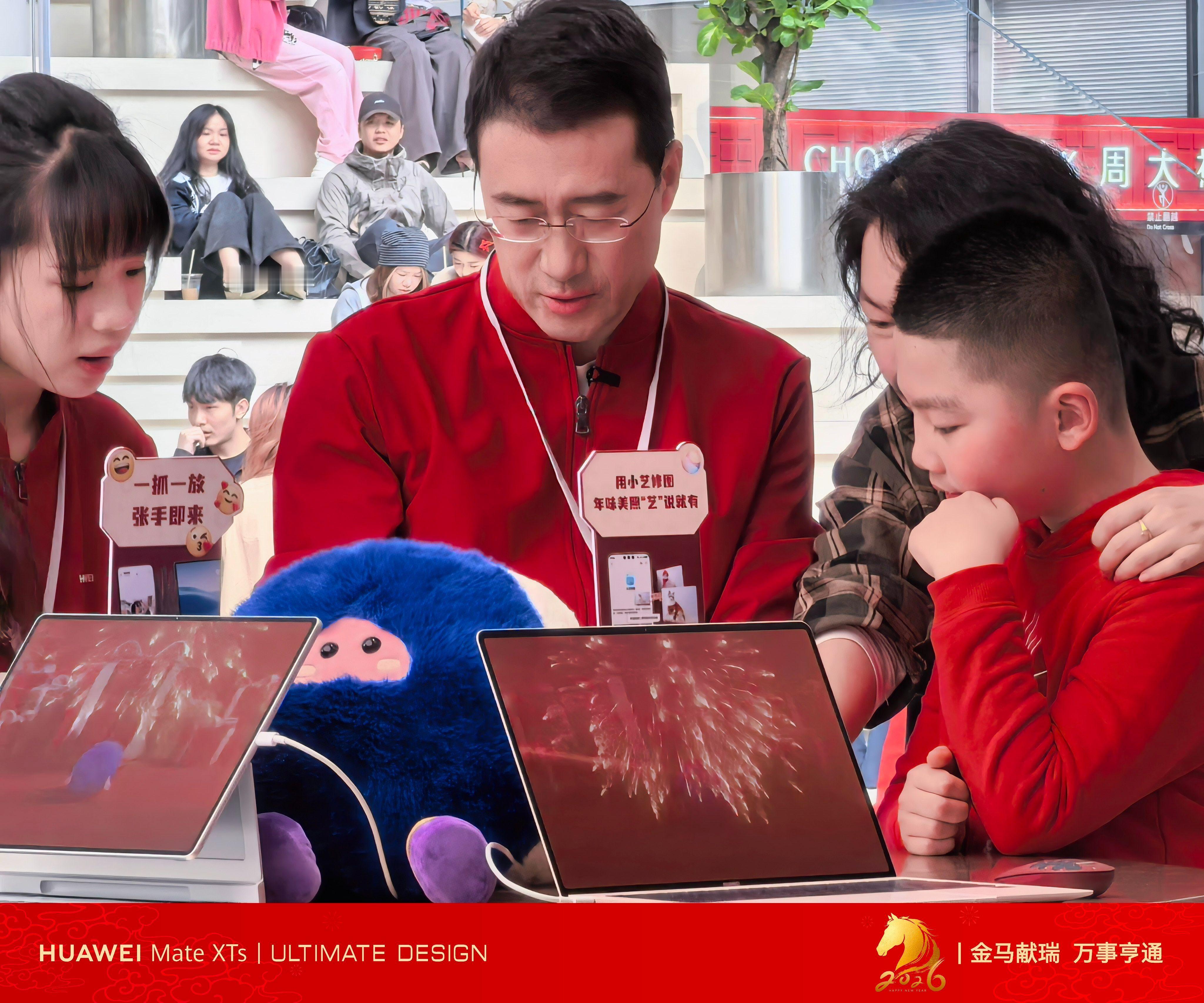 偶遇华为何刚周末给消费者拍全家福看到今年的华为新年照相馆又开张啦!作为每年都关注这场活动的“老粉”,相信很多人都看到2月7号深圳万象天地门店的活动——何刚亲自来当“店小二”啦!何刚可不是第一次来线下和花粉们互动啦,他每年都会来到一线服务咱们消费者,这次也是和花粉们面对面唠嗑、拍合影、亲自为花粉们拍全家福。这次他一来,门店瞬间热闹得像过年庙会,我凑过去和他一起体验了Mate 80的影像功能,那叫一个绝!拍出来的照片清晰得连睫毛都根根分明,小艺AI修图更是懒人福音,一键就能把废片变“大片”。最让我惊喜的是“碰一碰”分享功能,手机轻轻一碰就能把照片传到平板上,鸿蒙生态的便捷让我直呼“哇塞”!何刚全程和用户交流,一点架子都没有。看着他和用户们打成一片的样子,我突然懂了——华为的“以用户为中心”从来不是口号,而是像何刚这样,把用户当朋友、当家人,用最实在的行动传递温暖。这次活动让我真切感受到:科技不是冷冰冰的参数,而是有人情味的陪伴。没想到华为何刚这么会拍照
