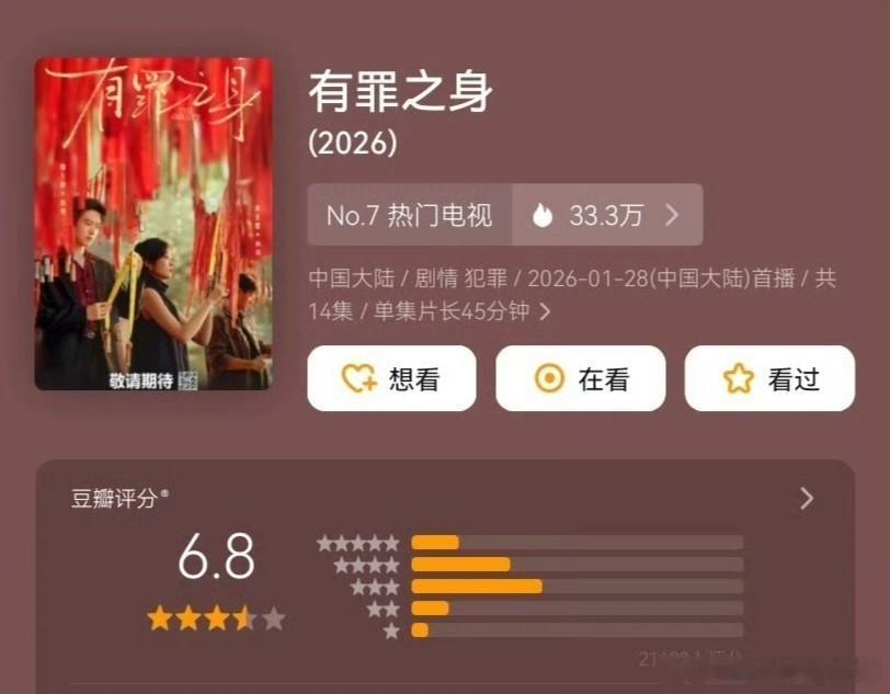 3.魏大勋、孙千《有罪之身》6.8,打分人数2.1万。