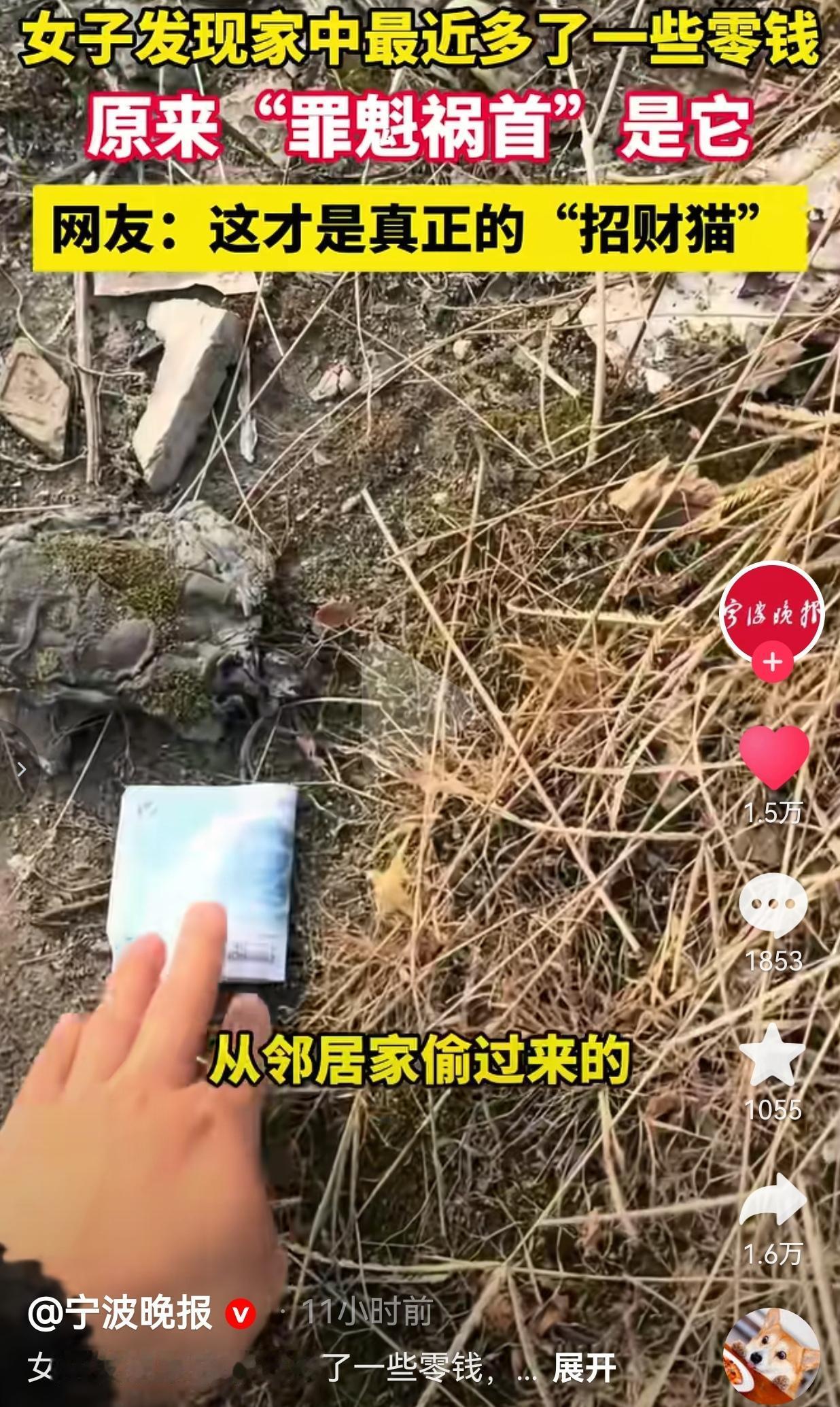 这才是真正的招财猫!近日,四川一位小姐姐发现家里最近总是莫名多出一些零钱,这些钱