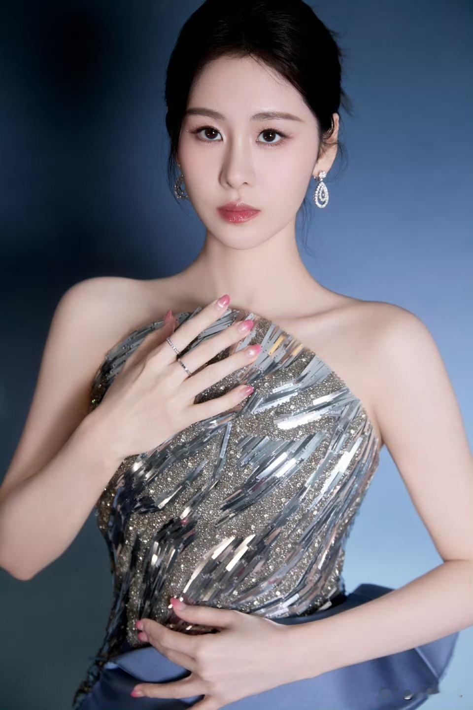 刘亦菲这造型也太美了!抹胸花边裙,花边在灯光下闪得我移不开眼,卷发温柔又带点小妩