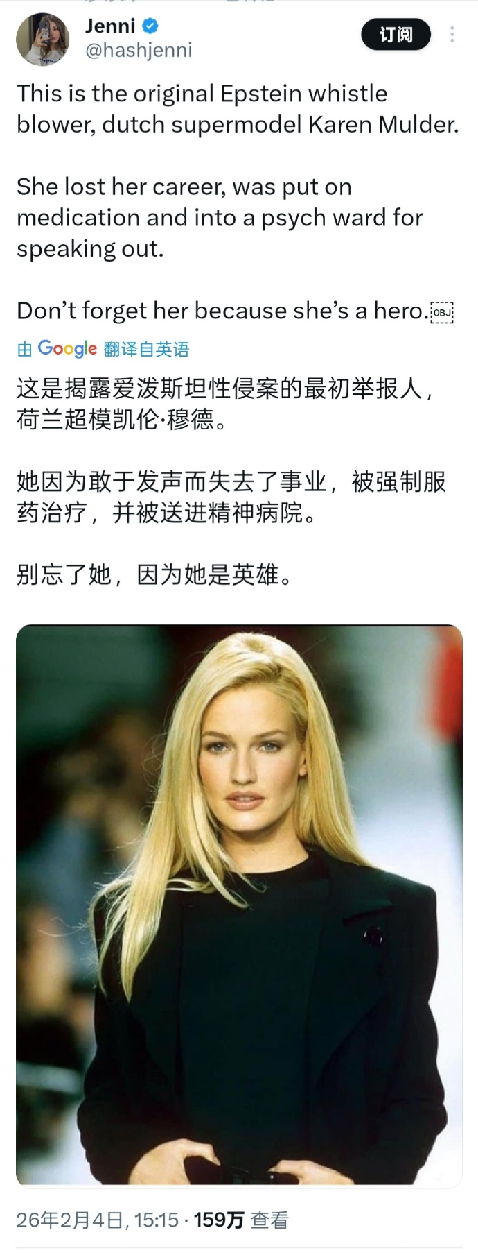 90年代的顶级超模凯伦·穆德。