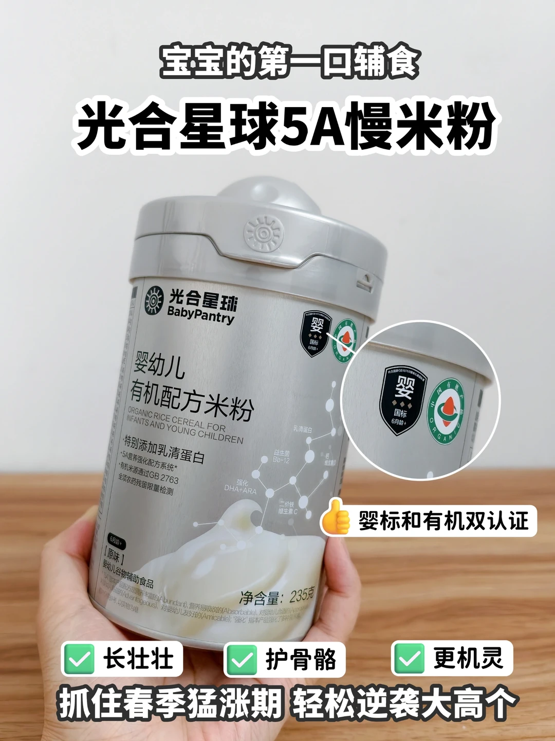 春季生长黄金季节,怎么助力宝宝成长?想要宝宝长得白胖壮实,有的妈妈给孩子疯狂喝奶,有的制作肉类辅食……怎样才能高效成长呢? · 今天就来给大家讲讲春季五维追长原理 1️⃣身高:骨骼是身体的结构支撑,只有骨骼健康成长,身体才能蹭蹭涨,而钙是构成骨骼的关键营养元素 2️⃣体重:脂肪重要,优质蛋白同样重要,其中乳清蛋白营养价值相对较高,同时也易消化吸收 3️⃣大脑:0-3岁是孩子👀🧠成长关键期,而DHA是组成神经细胞和视网膜的重要成分 4️⃣肠胃:宝宝肠胃尚未完全发育成熟,肠胃的消化吸收很重要 5️⃣能量:取决于微量元素摄取,宝宝6月龄后,从母体带来的铁元素即将消失殆尽,要及时补充 . 0-6月龄的宝宝主要营养摄取来源于母乳👩🏻/配方奶🍼,保证奶量充足,就可以获得身体所需营养。6月龄后,宝宝体格快速发育,单靠奶已经无法满足生长需求了,需要及时添加辅食。 . 辅食添加中,要注重钙、优质蛋白、DHA、二价铁等重点营养的摄取,米粉作为宝宝添加辅食的第一口食物,就显得格外重要了 . 对比了几家热门米粉,我发现光合星球5A慢米粉的营养是相对均衡的,钙+VD、乳清蛋白、DHA&ARA、二价铁+VC、益生素Bb-12这些营养它都包含,非常适合作为宝宝👧🏻辅食阶段的营养补充 . 重点是特别添加了乳清蛋白‼️要知道,这可是从牛奶蛋白中提取出来的“黄金蛋白”,是自然界中最接近人体需求的“完全蛋白”,里面含有的骨桥蛋白OPN、乳脂球膜MFGM,是母乳👩🏻关键营养,而且它分子细腻,温和不刺激,宝宝娇嫩肠胃也能轻松消化,不胀气、不闹肚,营养吸收更高效‼️也是宝宝长肉肉的小秘密哟 . 他家的米源也很特别,原料“慢大米”生长在全球仅有三块的黑土地带,要长够足足180天,比普通大米多一倍的时间‼️新鲜大米丰收后当天就会运到工厂,2小时就能变成香喷喷的米粉,配料表干净,M宝/玻璃肚宝宝也能吃哟~ . 冲泡起来也很方面,溶解很快,不会出现结块疙瘩,即使是厨房小白👩🏻也能轻松冲出细腻顺滑的米糊哟~ 准备给宝宝添加辅食的,可以直接入光合星球5A慢米粉哟,照着春季成长食谱做,营养给到位,宝宝活力满满! .
