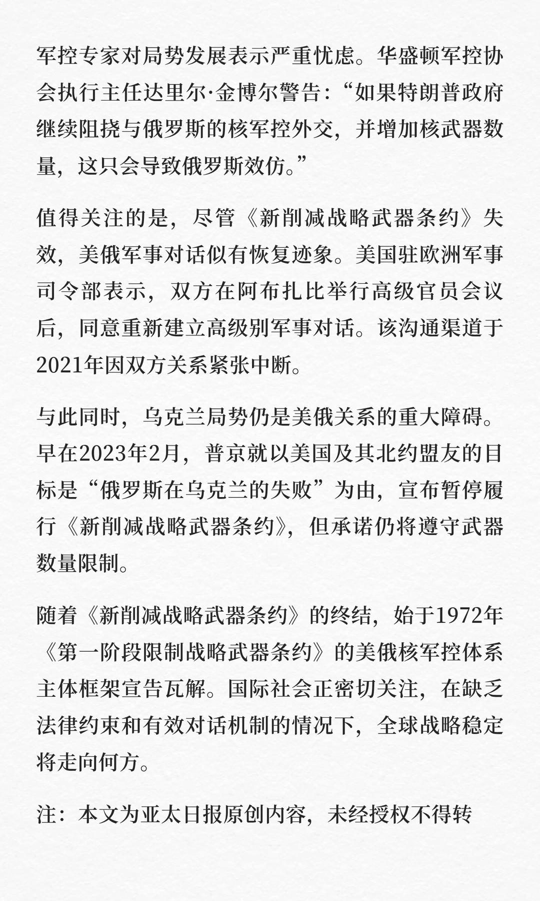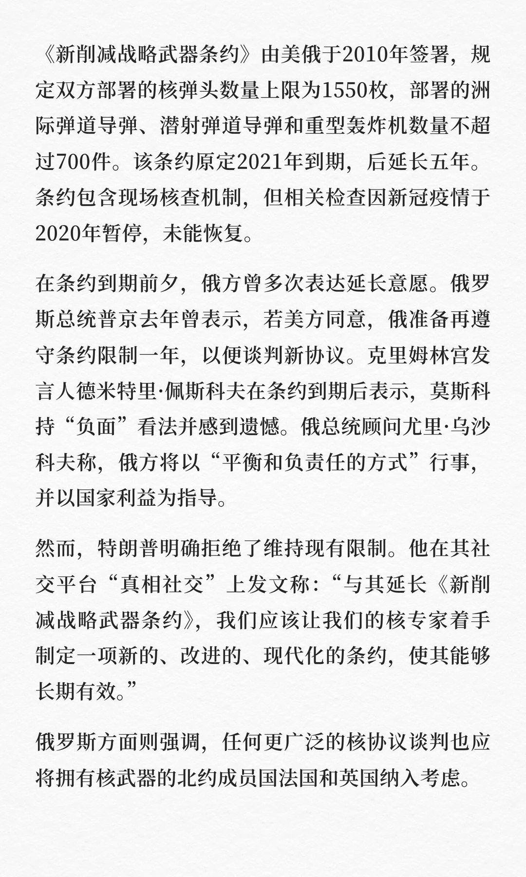 特朗普:拒绝延长核武条约