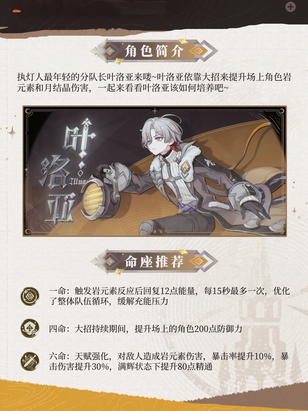 执灯人分队长「叶洛亚」🆕养成攻略! 他是🆕反应月结晶辅助角色,非常适配兹白