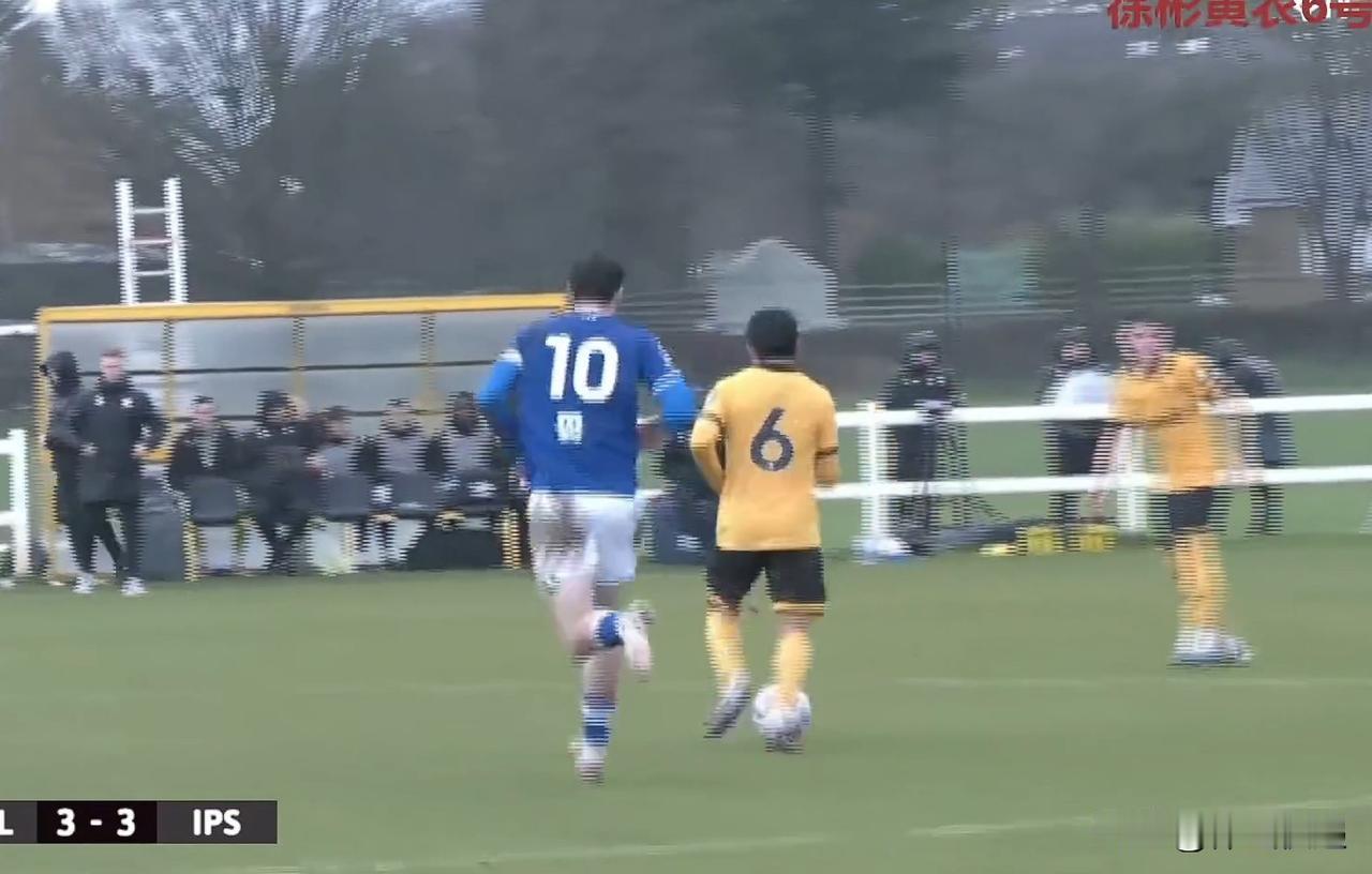徐彬迎来英国留洋首秀!!!在U21狼队和伊普斯维奇的比赛中,徐彬司职中后场,首发