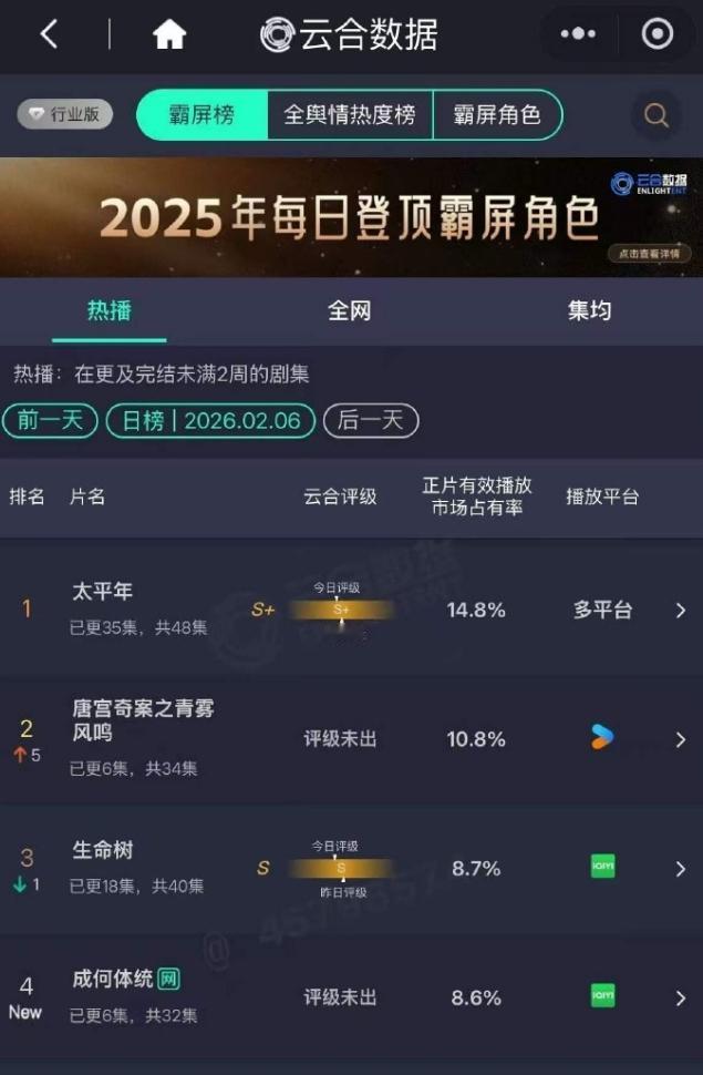 王楚然《成何体统》首日爆开! 《成何体统》开播首日云合占比8.6%,26年第一,首日云合播放量1785万,26年首日播放量第一,比昨天白鹿开播的《唐宫奇案》播放量多出整整一倍还多,首日站内热度破7800,次日站内热度破8800,26年爱奇艺站内热度第一,除了招商,整体表现都是26年第一。