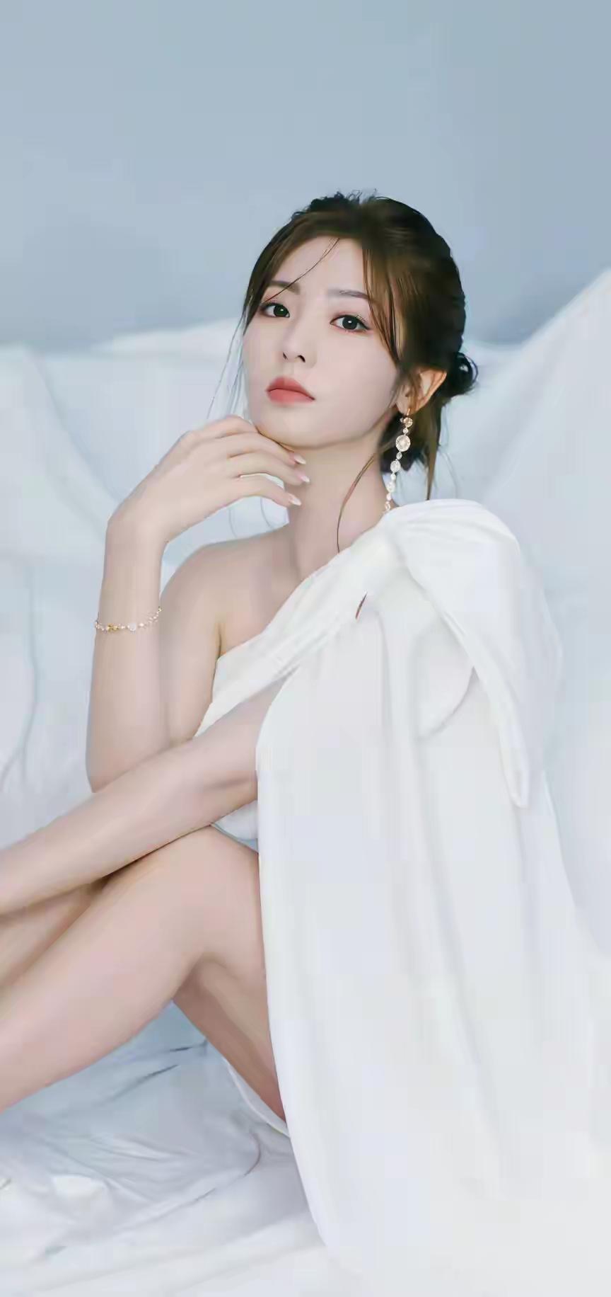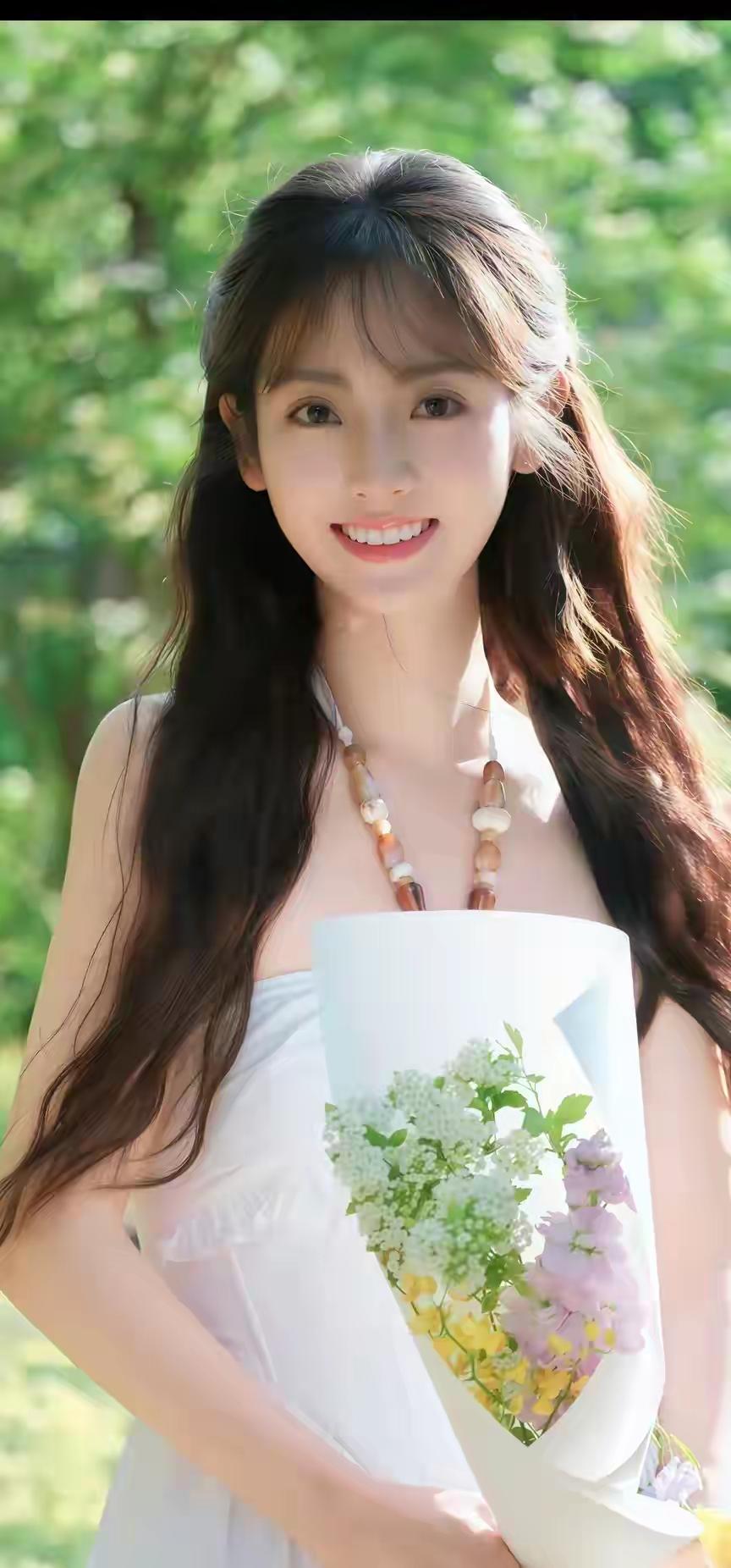 优雅黑发,白衣动人,镜中倩影,岁月静好。