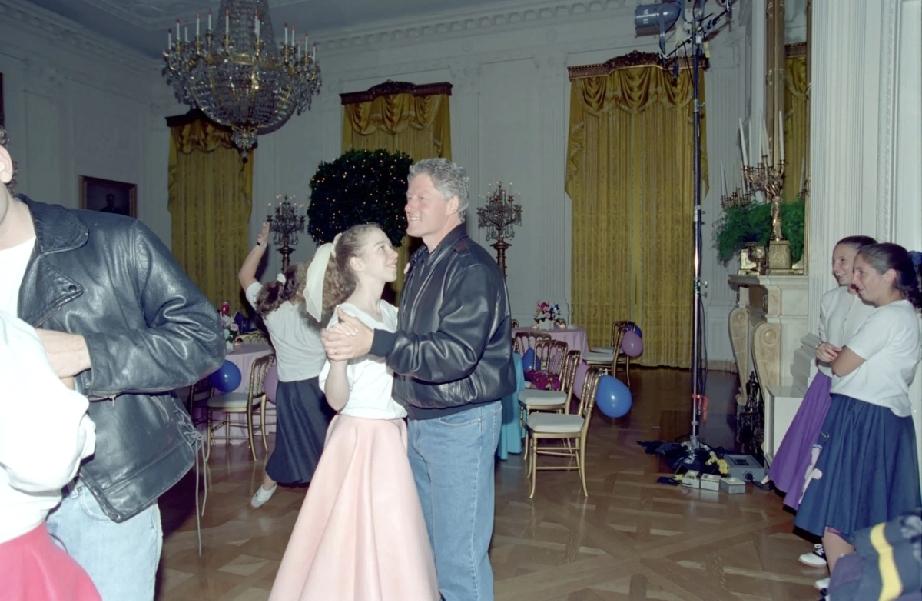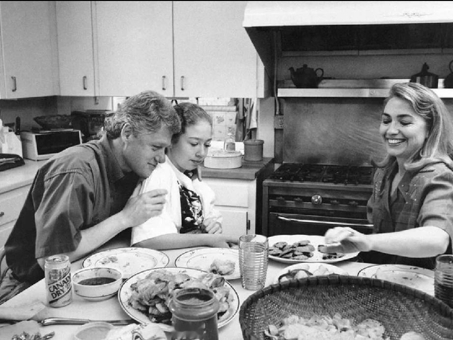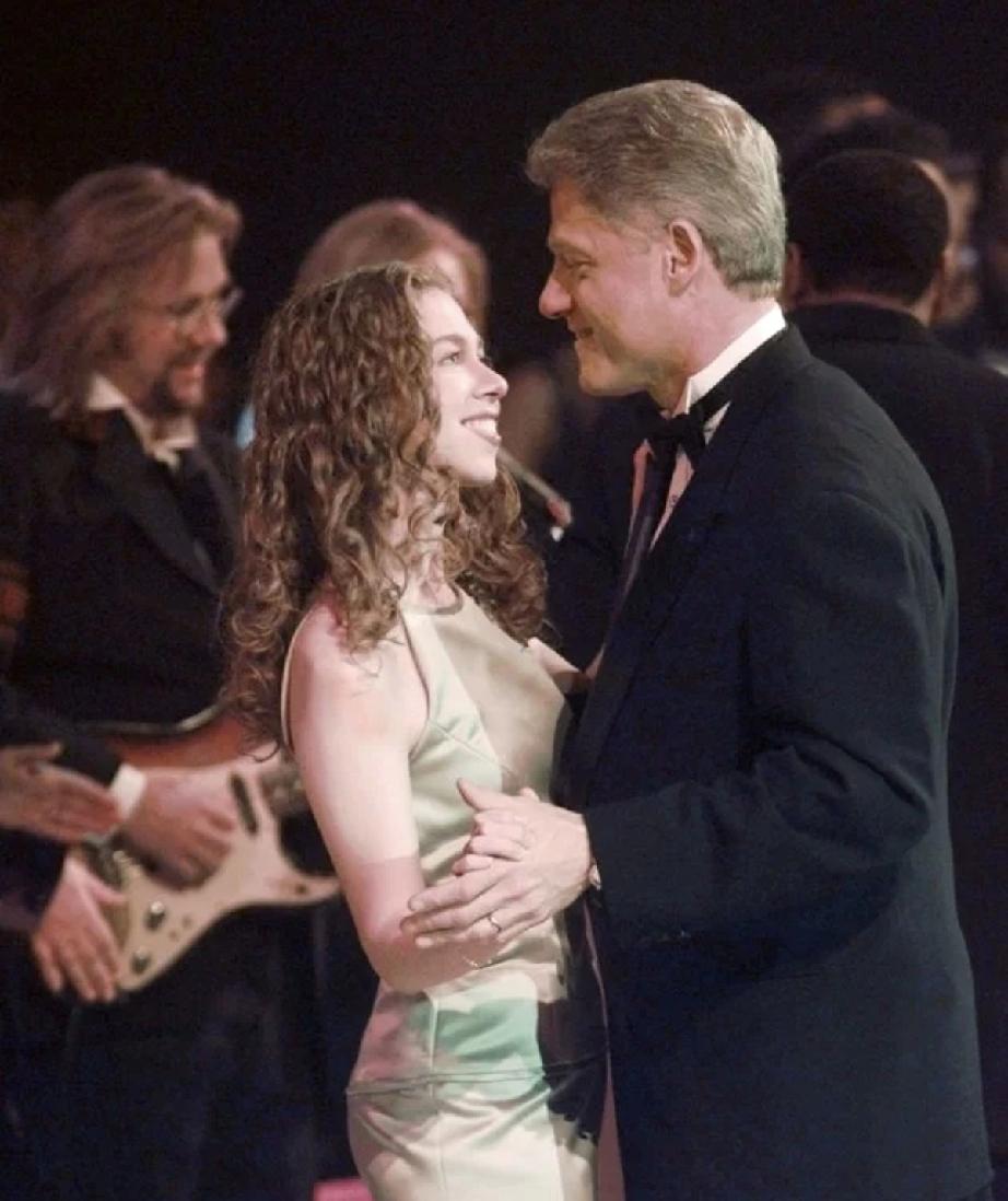 克林顿也是个女儿奴。 圆头圆脑的萌娃切尔西,爸爸做她的摇摇椅; 怀抱金发天使切尔西,克林顿父爱爆棚亲不够; 克林顿哄着切尔西,像个老小孩,顺带也给女儿撒撒娇;希拉里一脸的慈母笑。 女儿是爸爸上辈子的小情人。 每个家庭的幸福都是相似的。
