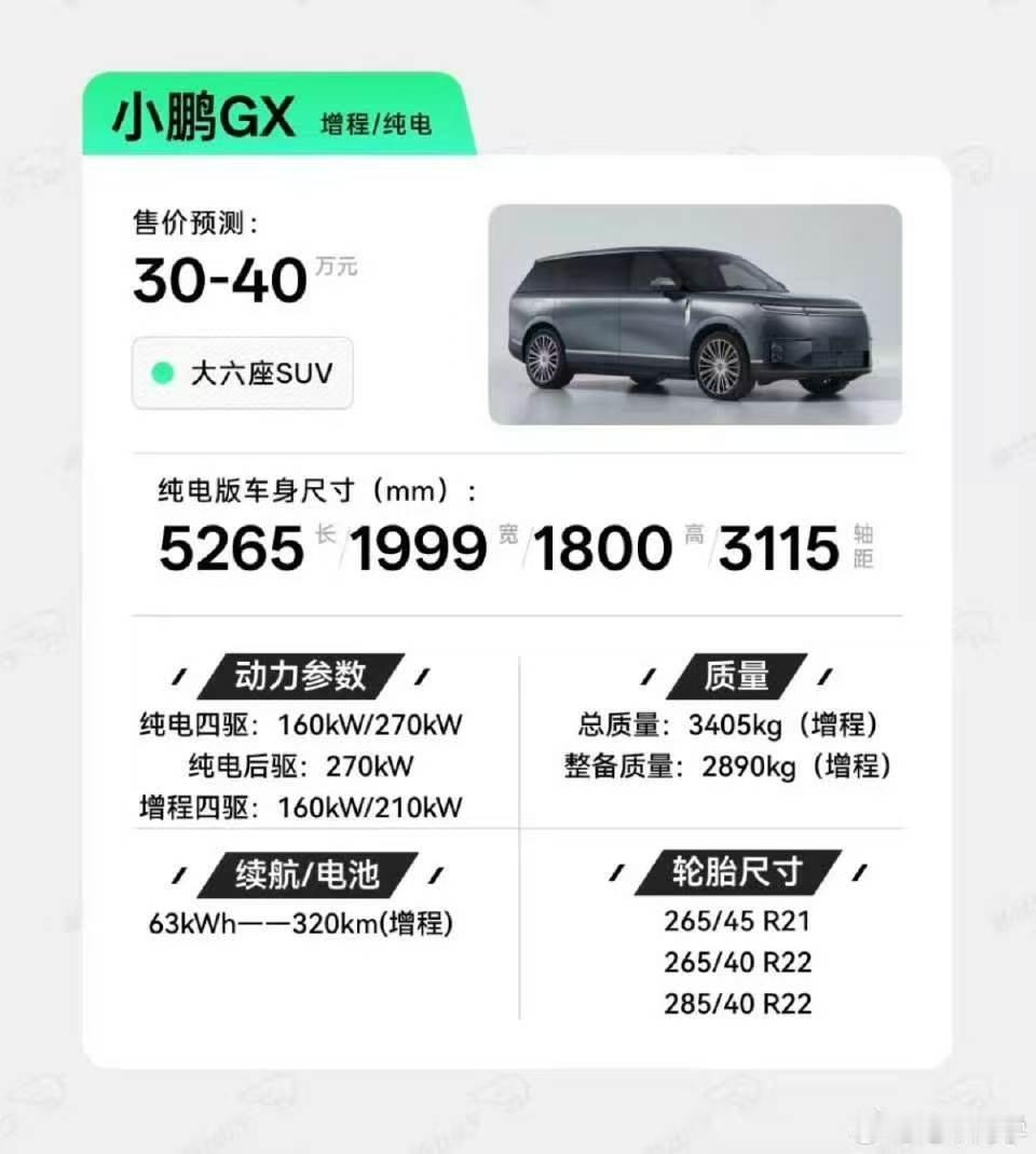 工信部发布第 404 批《道路机动车辆生产企业及产品公告》新产品公示,小鹏 GX 现身其中。随后,小鹏汽车公布这款新车的部分规格。