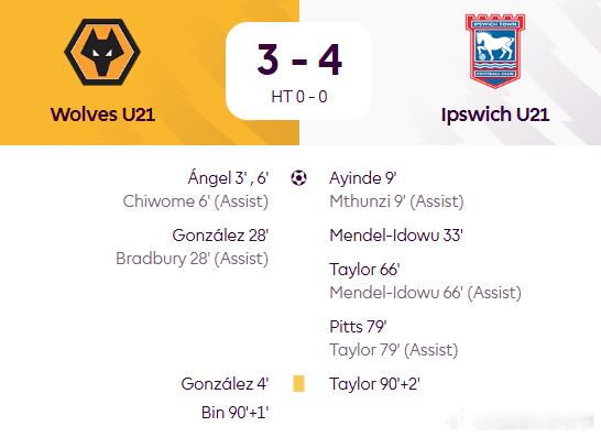 徐彬留洋首秀结束,代表U21狼队首发出战,打满全场,贡献10次抢断,最后时刻吃到黄牌。U21狼队主场3-4被伊普斯维奇逆转。徐彬留洋首秀