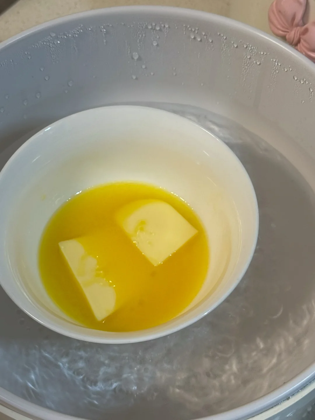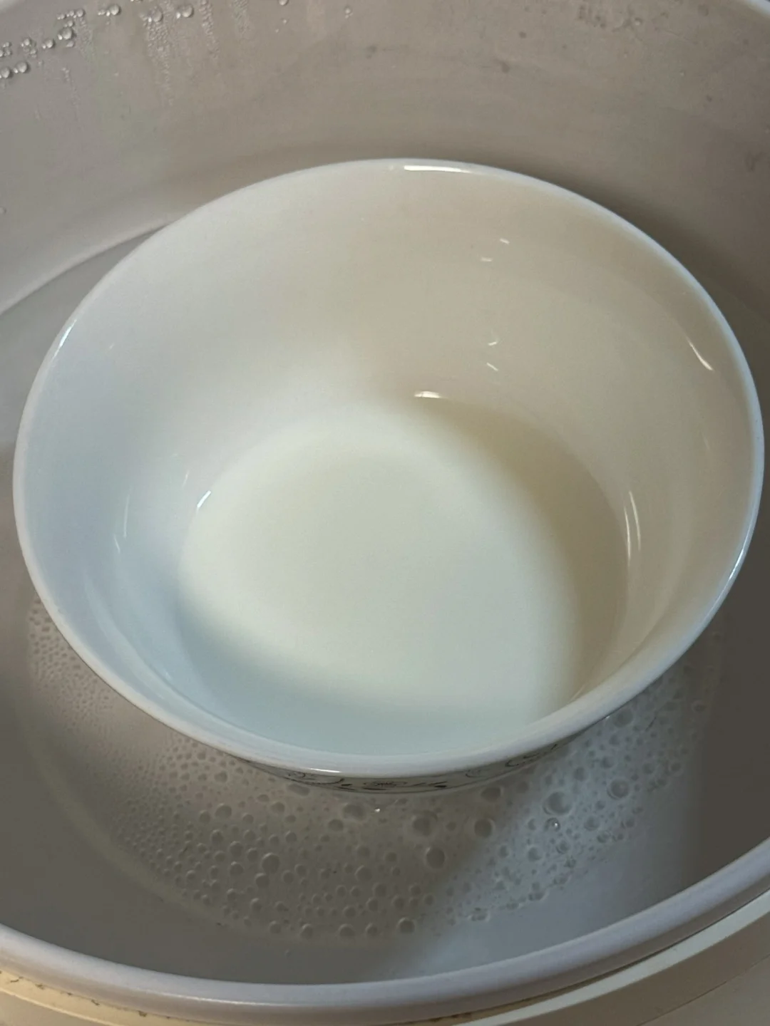 1.牛奶、鸡蛋隔热水加热至温热(可以使麻薯发的更大,状态更稳定)