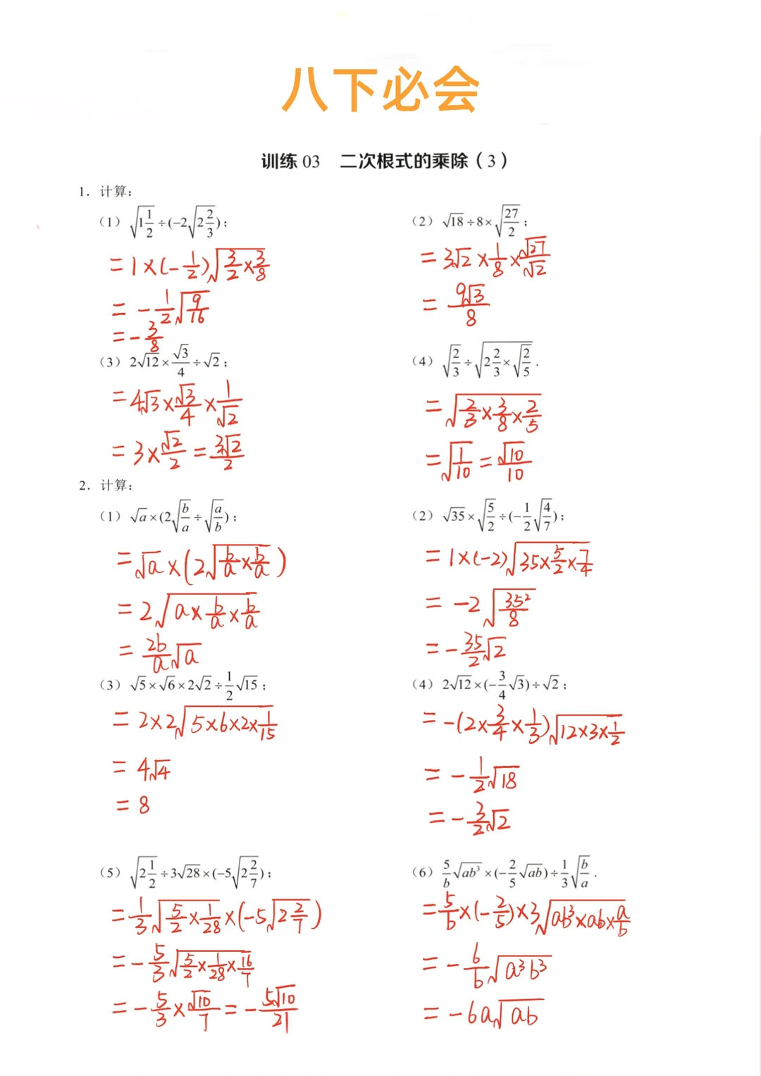 中考数学几何模型 初中数学 计算 中考数学 初二数学 八年级数学 二次根式 八下 八下数学 初二下数学