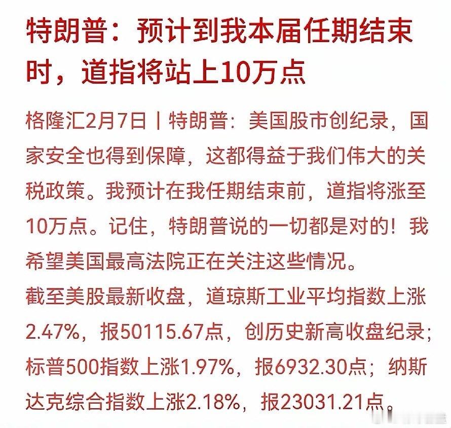 下周那个行业板块领涨?下面做了一个梳理,大家快把看好行业的编号打在评论区吧。另外,特朗普又发布了不靠谱言论 ,说到 :“预计到我本届任期结束时,道指将站上10万点” ,大家觉得特朗普是在吹牛吗?1、半导体:趋势方向,业绩好。已经调整了差不多两周时间,趋势方向比较明确,业绩也是挺好,可以趋势持股,或者做T参与。2、商业航天:虽然近期在调整,但是短期看还会有反弹,可优优先考虑SPACEX 概念。3、AI应用: 走势上看,短期有压制,前排的还需要观察。3、国产算力: 周末有利好,上一篇文章中也介绍了算力的相关情况。4、机器人:已经调整了两周,出现波段性机会了,重点看T链条,波段操作。5、有色:可重点关注核心有色,铜、小金看期货价格。6、电力设备:业绩好,有趋势机会,但是操作上不要追高。7、消费: 这个板块估计没有多少人会关注吧,只要市场缩量就会轮到。8、其它:如银行、保险、证券、煤炭等传统行业板块,大家有看好的也可以写出来。9、特朗普说在他本届任期结束时,道指将站上10万点,大家觉得是吹牛,还是真的有可能实现呢?