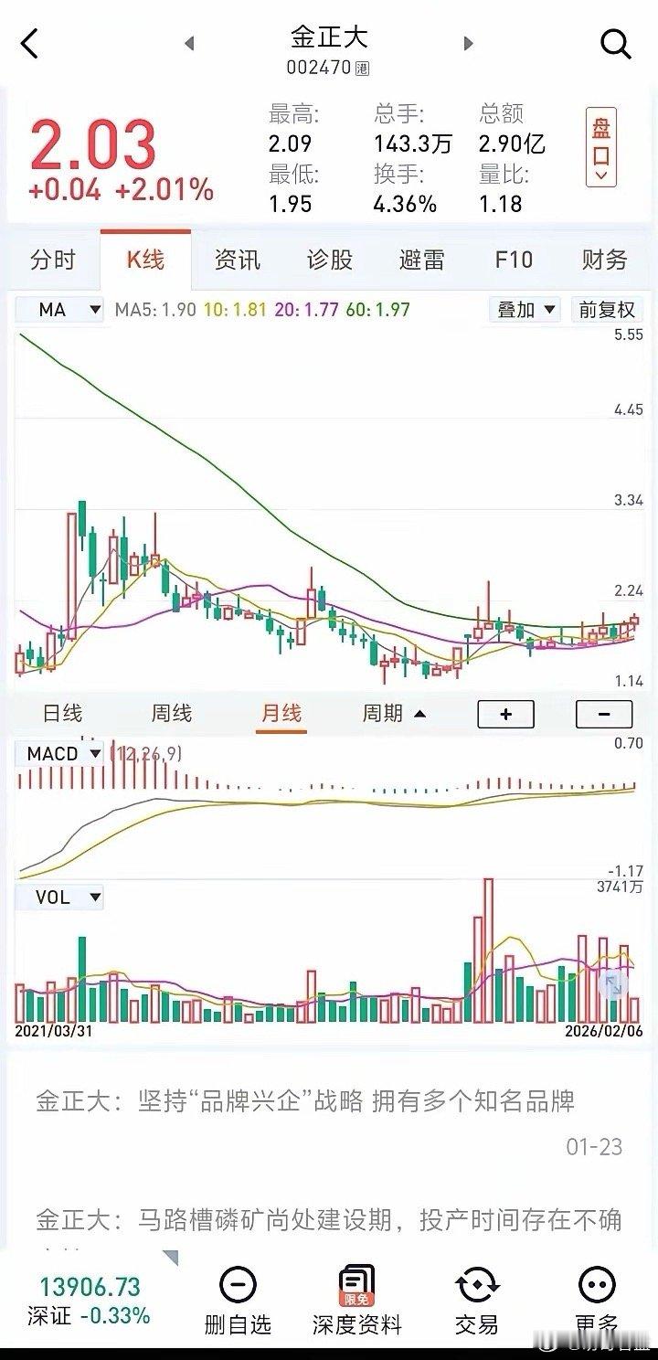 金正大:低价股,股价从最高16.21元跌至最低1.02元。下跌空间巨大,又经过几年的底部横盘,没有耐心的投资者已其本洗出。超跌后更具安全边际。近几月已出现连续放量,有主力运作迹象。25年第三季度已实现扭亏为盈,营收同比增长14.44%,归母净利润为4883.8万元。金正大作为缓控释肥龙头,市占率27.3%,稳居行业首位。公司还是马路槽磷矿正处建设期。投产只是时间问题。最近一年新能源明显复苏,对各种资源的需求持续增加。临沂金正大投资控股有限公司也是国资委。相信有能力使公司经营持续向好。