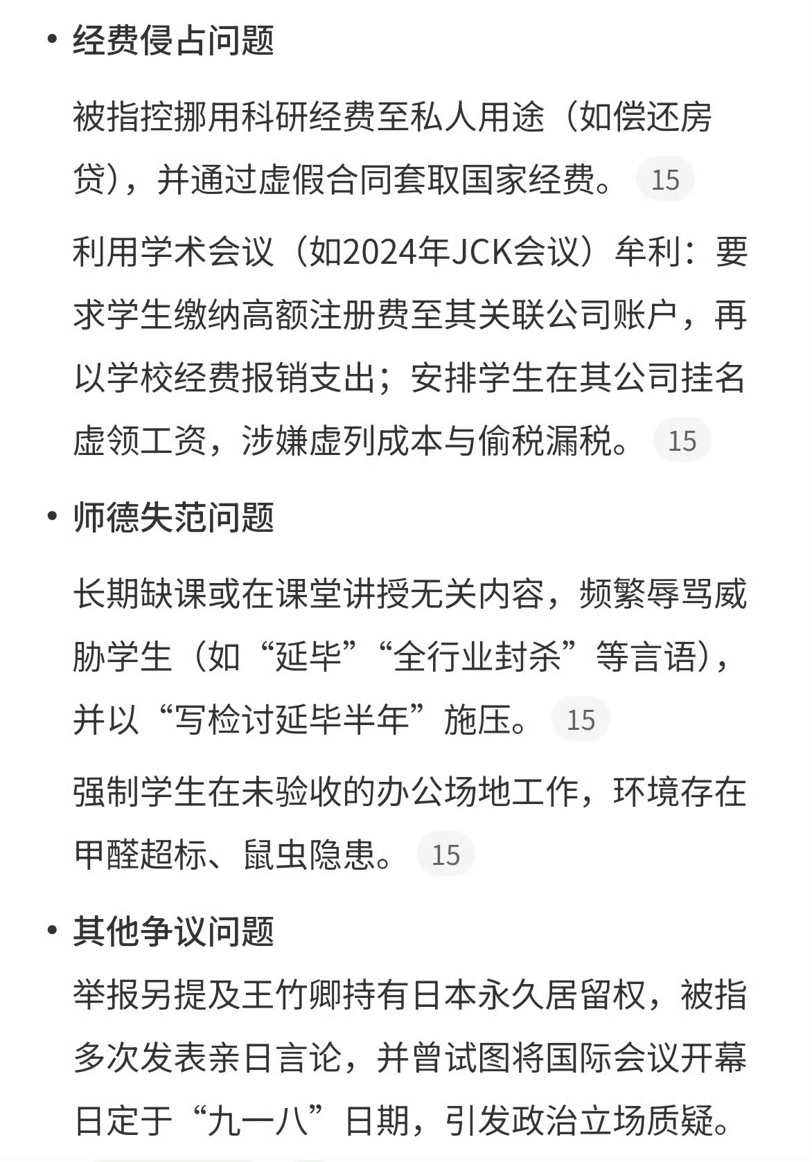 川大博导被举报83页材料公开四川大学就王竹卿相关问题发布通报,该校某课题组多名在读硕博研究生联合发起举报,还整理了长达83页的材料作为举证依据,指控王竹卿存在学术不端、侵占经费、师德失范等多项问题,相关举报内容引发广泛关注。针对此次举报事件,四川大学第一时间作出回应,明确表示已专门成立工作专班,严格按照相关规定正式启动调查程序,对举报所涉问题展开全面核查。目前调查工作正有序推进中,暂无更多具体调查进展和结果对外公布,网友及社会各界均对此次调查高度关注,纷纷表示在线蹲守、静待校方后续发布官方调查结论,期待此事能得到公正、透明的处理,切实维护学术环境和师生合法权益。