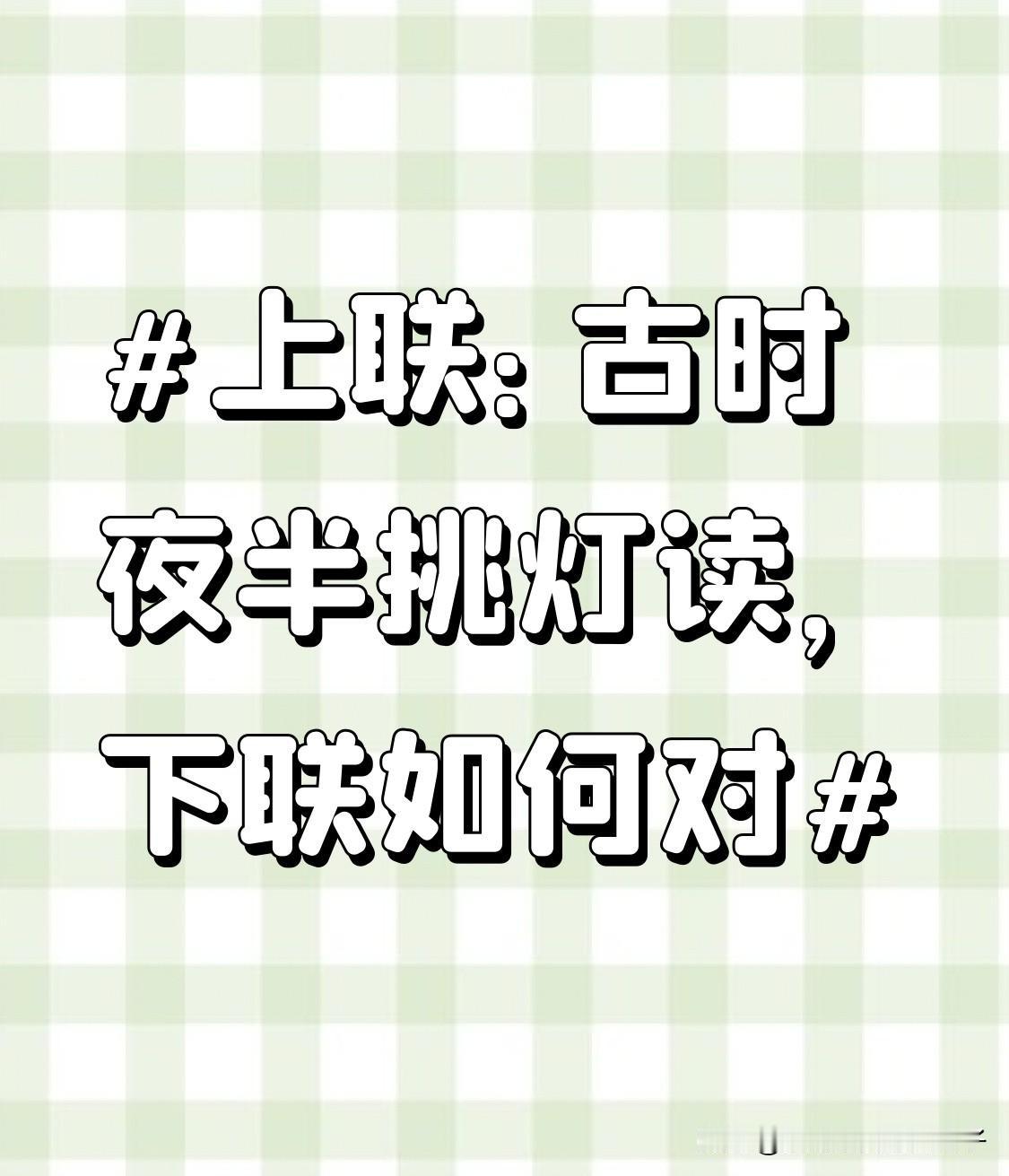 看到“古时夜半挑灯读”这个上联,一下子就感受到了古代人刻苦求学的氛围,“夜半挑灯”的画面感十足。我试着对个下联“此刻晨初伏案耕”。“此刻”对应“古时”,时间上一今一古;“晨初”对“夜半”,一个清晨一个半夜,对仗工整;“伏案耕”对应“挑灯读”,“耕”可以理解为像农民耕地一样,在书桌前辛勤创作、工作,和上联那种努力的状态相呼应。就像古人夜半读书求知识,如今我们清晨伏案为生活拼搏,都有着为目标努力的劲儿。