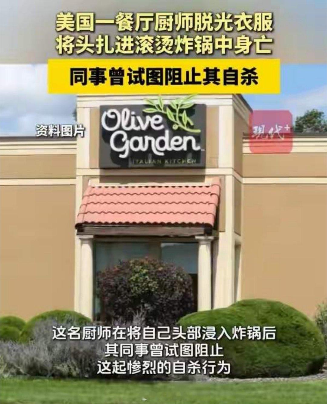 美国宾夕法尼亚州一餐厅厨师突然脱光衣服,一头扎进滚烫油锅,送医后因伤势过重不幸身亡…油炸自己,自杀也不用这么狠吧?是个狠人啊,这得有多大的死志啊。有这样大的勇气,有这么厉害的果决,活着什么事做不成啊?