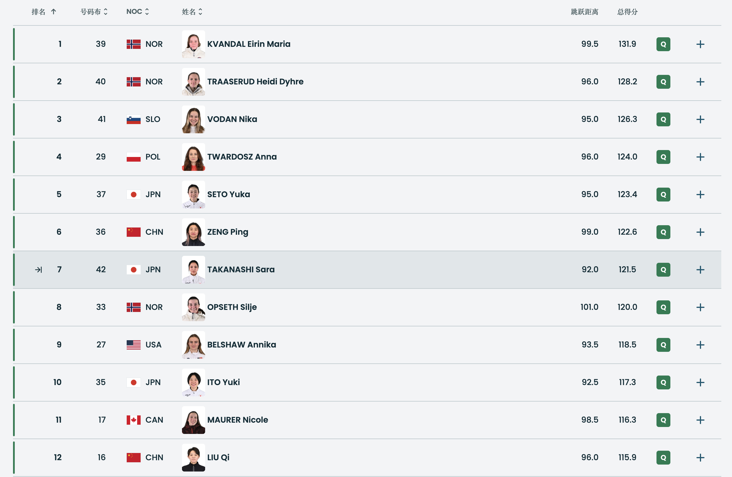 跳台滑雪女子标准台第一轮,🇨🇳曾坪和刘奇提前锁定跳台滑雪决赛名额,为中国两朵金花加油⛽️决赛将于稍后进行。