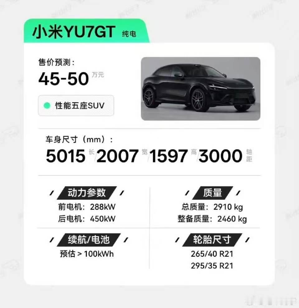【宽胎+黑化:小米YU7GT完成申报,288kW+450kW双电机极