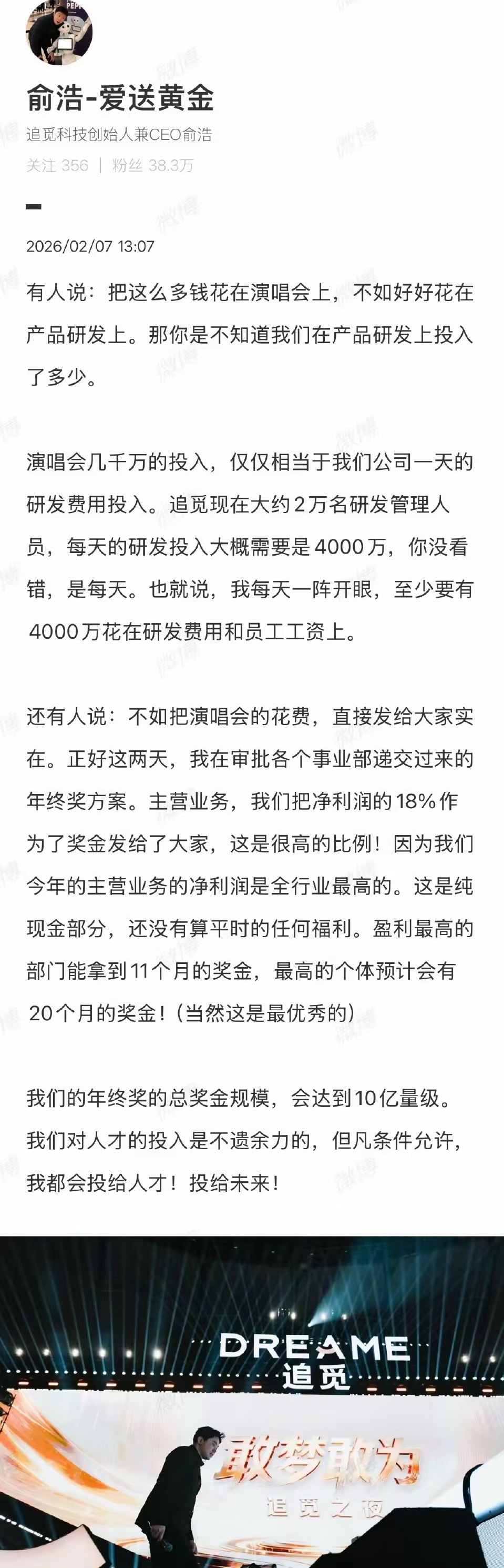 追觅CEO称每天研发投入4000万。