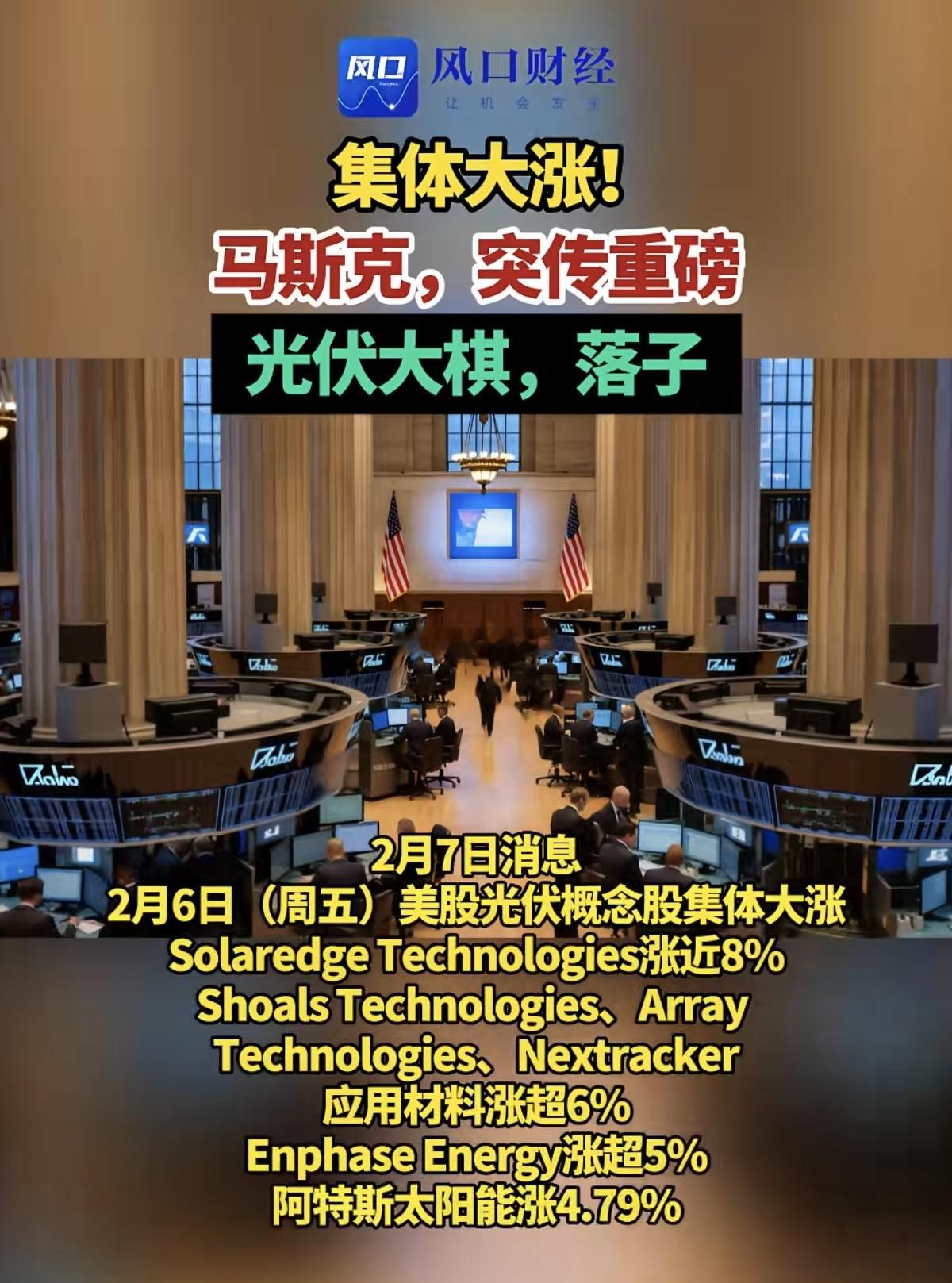周五晚间,美股光伏概念股集体大涨!特斯拉正在加速推进太阳能制造,以落实马斯克提出的年产100GW太阳能电池。