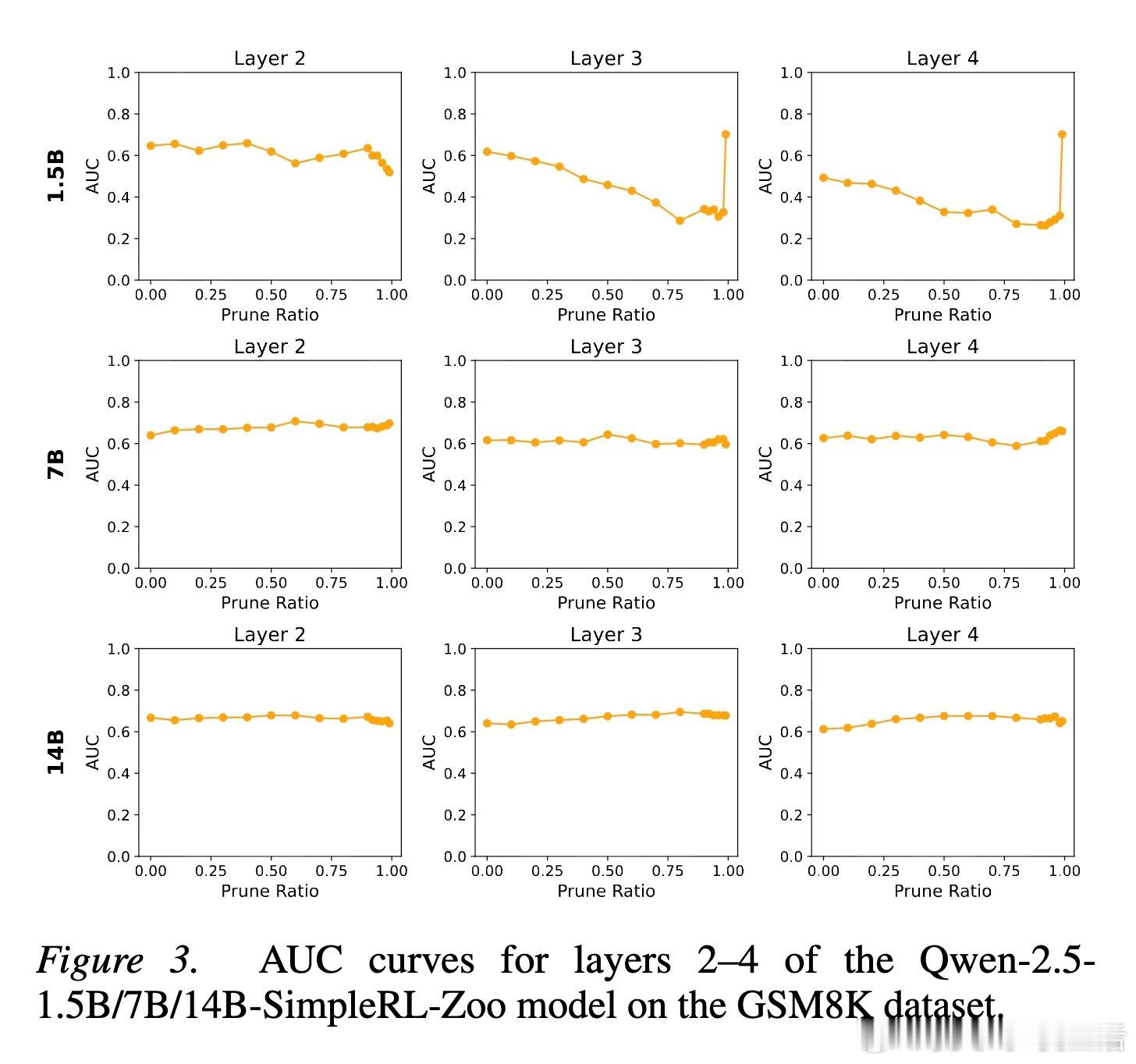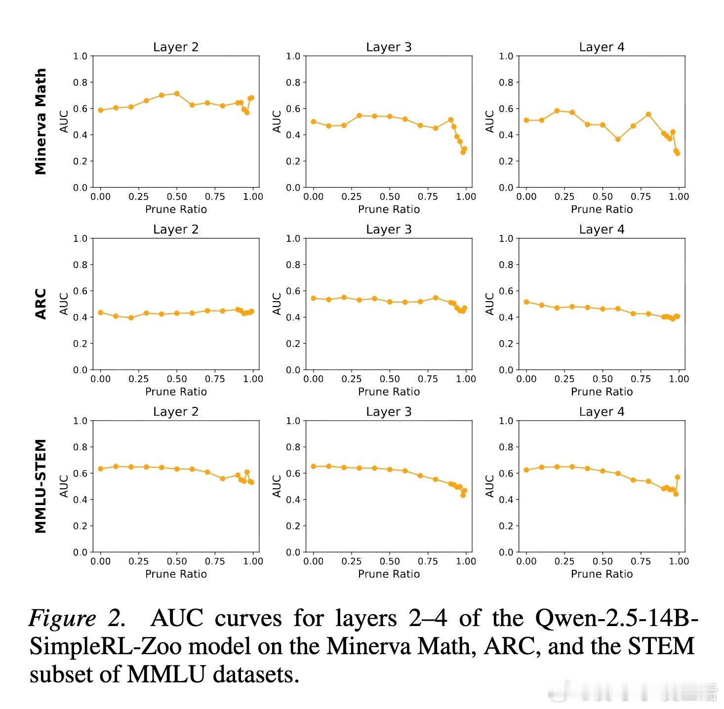 为了验证这些神经元的重要性,研究者进行了一场精确的“外科手术”。实验显示,仅仅屏蔽掉这 1% 的价值神经元,模型的推理能力就会瞬间崩塌;而随机屏蔽同样比例的其他神经元,模型表现几乎不受影响。这揭示了一个深刻的真相:模型的高级推理能力并非平均分布,而是由极少数“精英神经元”驱动的。