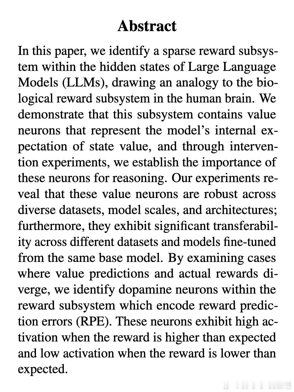 大语言模型(LLM)的内部究竟发生了什么?最新研究发现,LLM 内部竟然存在一个与人类大脑极其相似的“稀疏奖励子系统”。这表明,模型不仅仅是在进行统计学上的概率预测,其内部还潜伏着一套具备自我评估能力的“数字神经系统”。