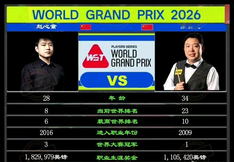 算上这次世界大奖赛决赛,赵心童职业生涯第4次晋级排名赛决赛。前3次决赛赵心童都夺冠了,这次呢? 2021年英锦赛:10-5布雷切尔 2022年德国大师赛:9-0颜丙涛 2025年世锦赛:18-12马克·威廉姆斯 2026年世界大奖赛:?-?张安达