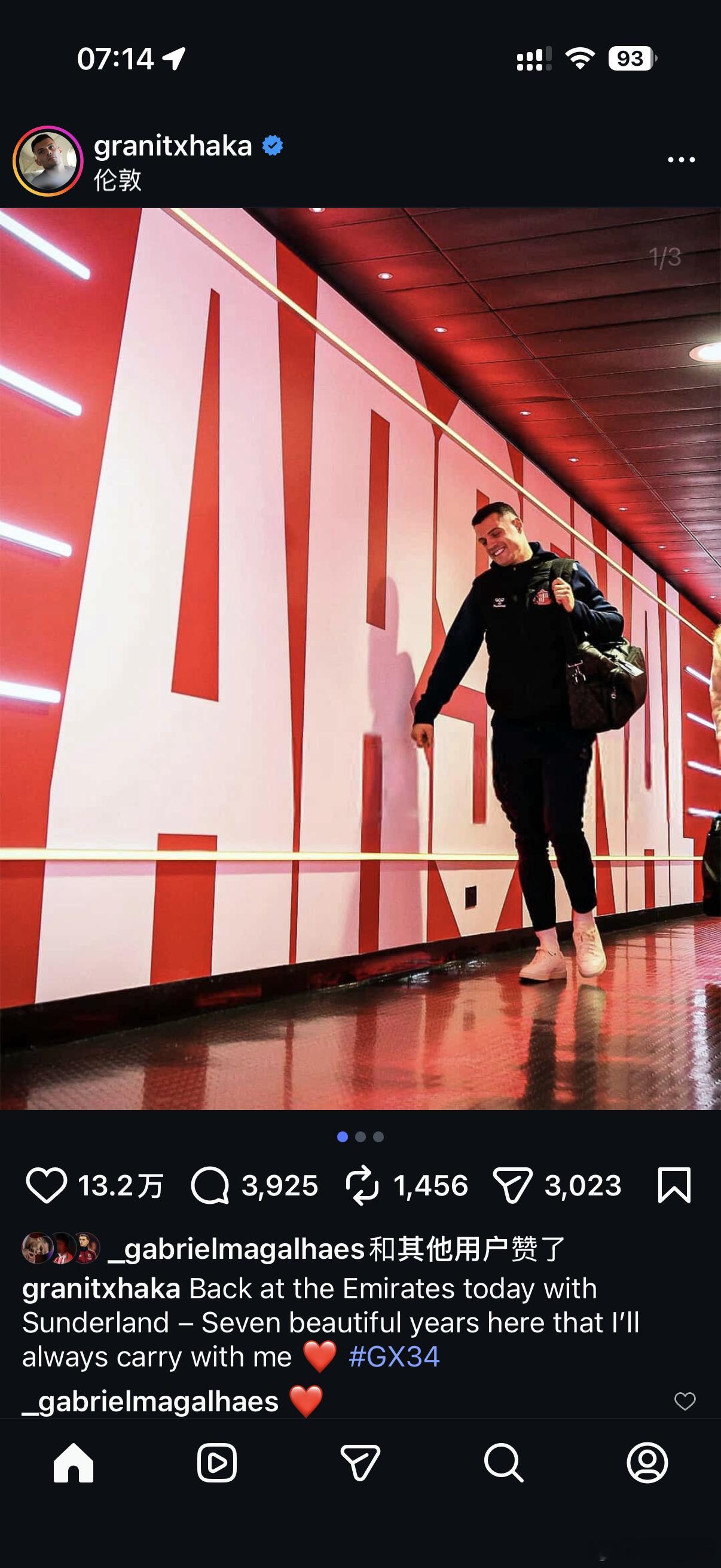 “今天随桑德兰队重返酋长球场 —— 在这里度过了七年美好时光,我将永远铭记于心 ❤️ GX34”
