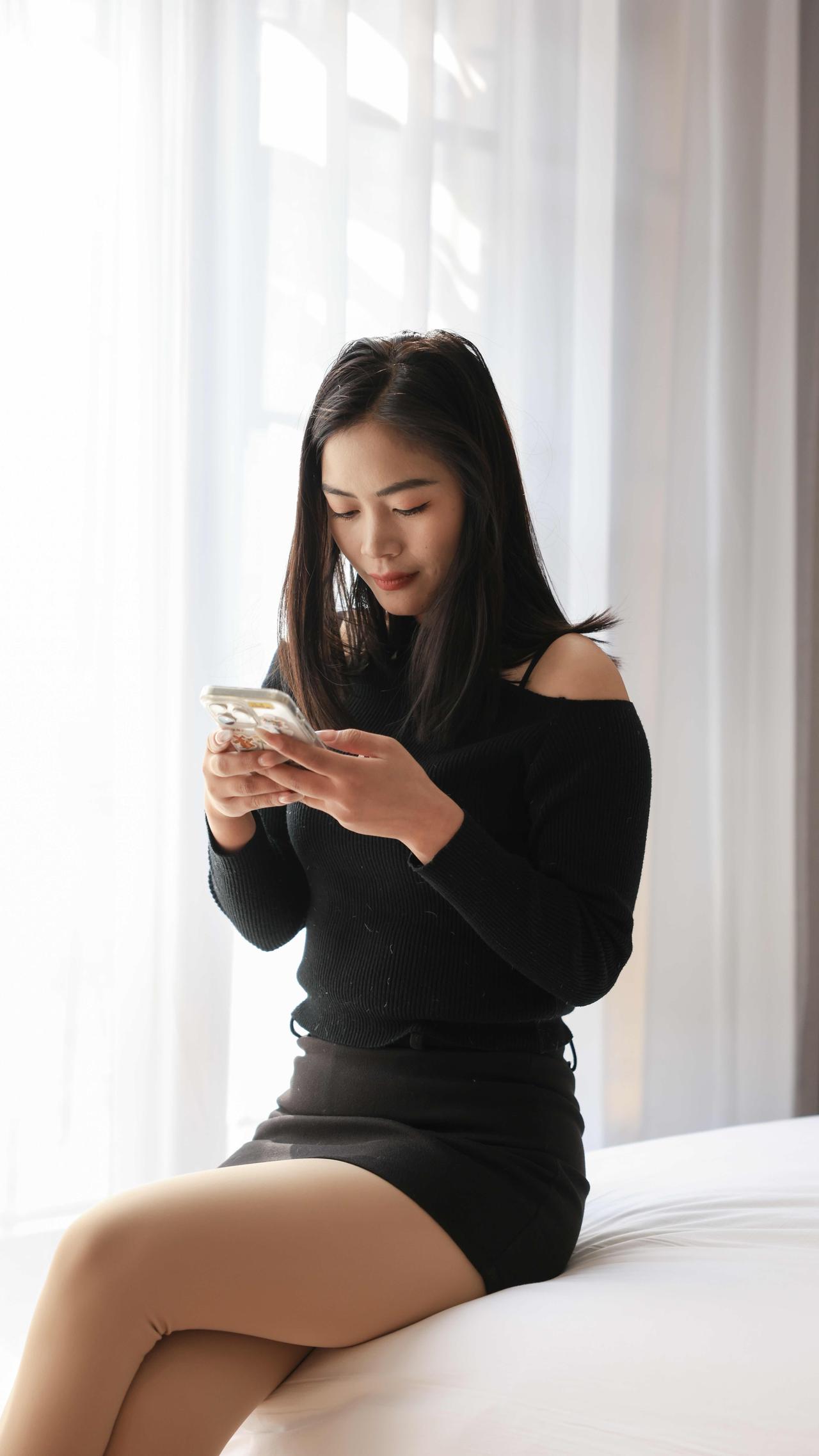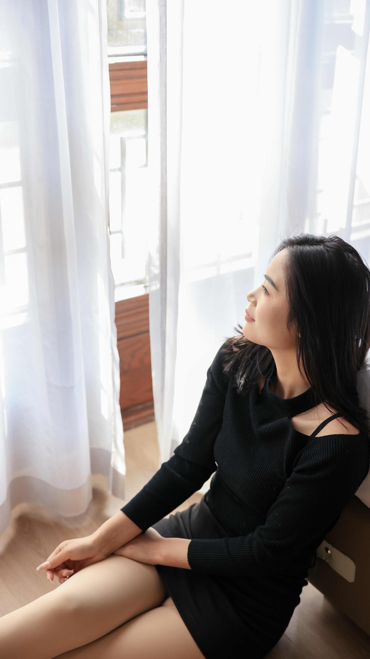组图|情绪自留地 把心事织进黑色针织衫的纹路里, 在柔和的光影里,允许自己一会