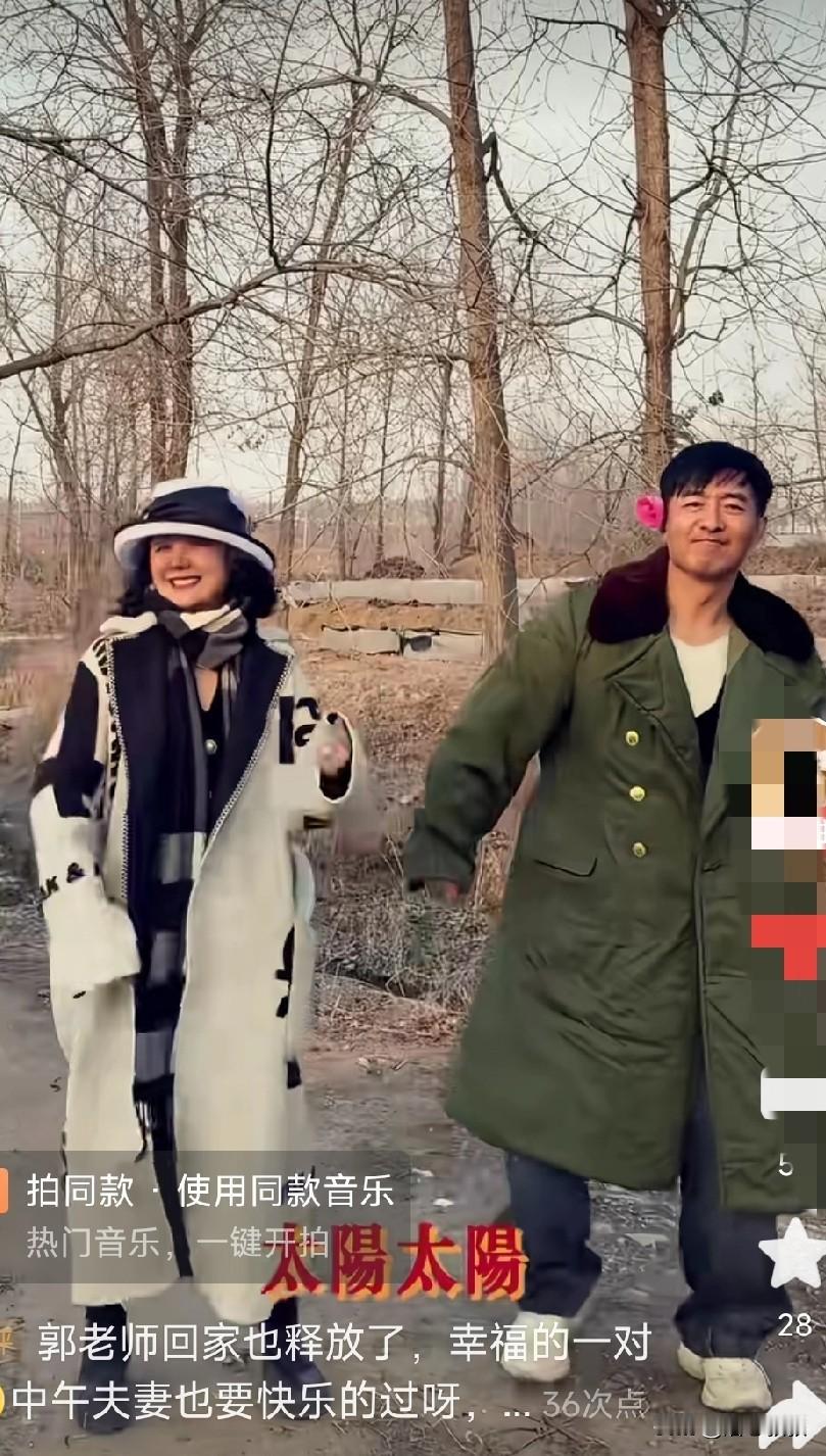 有什么放不下的,放下了就幸福感就来了。 看看郭晓冬两口子,没有一点明星光环,绿色军大衣一穿,即亲民又接地气活脱脱的自由不羁。不像某些人,一说她是东北人,人家立马拿出北京户口口口声声说自己北京人。 和我们普通人一样,不要老端着,什么事业有成,什么奔驰宝马,什么别墅大厦……自己贷款给自己买个磨,买就买了,慢慢拉就行了,不要总想着啥时候才能磨完?拉着拉着打个盹,偷吃一口都是可以的? 过年了,挣到钱的回家别端着。没挣到钱的回家别觉得矮人一等。找到陪伴家人的幸福才重要。