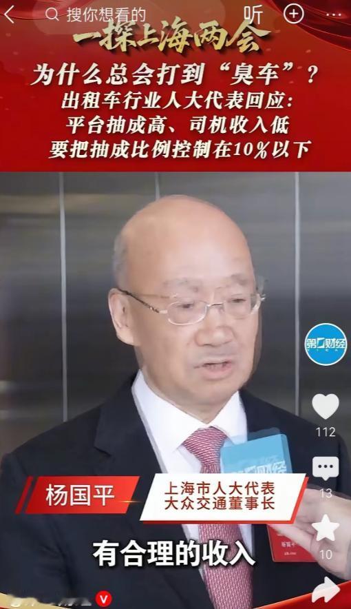 中国的资本,已经开始不受管控了,政府必须要提高警惕! 上海人大代表直接建议,把网约车平台抽成卡到10%以下,不然老百姓打车只会越来越糟,这话说到心坎里了! 不管是上海、北京,还是其他大城市,只要打过网约车的人都有体会,这两年打车是真不容易。起步价一涨再涨,平时一段十几块的路程,现在动辄二三十块,遇上早晚高峰,价格还得往上浮,有时候溢价能到一半。 更让人着急的是,就算愿意多花钱,也得排队等,以前三五分钟就能叫到车,现在有时候等十几二十分钟都没人接单,偶尔派来的车,还在几公里以外。除此之外,司机的服务态度也大不如前,有的不耐烦催乘客上车,有的路上开得飞快,问两句路线还爱答不理,其实这事儿一点都不复杂,根源就出在网约车平台的抽成上。 现在市面上主流的网约车平台,抽成比例一点都不低,根据相关部门公布的数据和行业报告,抽成上限基本在18%到30%之间,也就是说,司机跑一单赚100块,平台就要拿走18到30块。有的平台采用浮动抽成,高峰时段、长途单的抽成更高,有时候能超过30%。 就拿高德打车来说,虽然它自己的信息服务费上限降到了9%,但合作的网约车平台综合抽成还是不超过27%,算下来,司机到手的钱还是少得可怜。2024年全国网约车市场年报显示,当年前10个月,全国网约车司机平均小时收入只有27元,比2023年的31元下降了约12.9%,不少地方的司机收入还会随季节波动,一点都不稳定。 有个在上海开了三年多网约车的路师傅,累计跑了两万多单,他见证了网约车行业的变化。他说以前车少单多,每天出车10个小时,流水能有七八百块,扣除抽成和成本,到手也能有五百多块。 现在车多单少,路面上经常能看到几十辆空车抢十几个订单,他不得不延长出车时间,每天开十几个小时,流水也就五六百块,扣除抽成和成本,到手也就三百块左右,收入比三年前少了一大半。更让他无奈的是,平台还经常推出“一口价”订单,对乘客便宜,但对司机来说,一旦遇上堵车,不仅不赚钱,还得倒贴时间和电费,不接又没单子做,左右为难。 司机辛辛苦苦跑一天,大部分钱都被平台抽走了,自己落不下多少,长期下来,谁还有心思好好干。有的司机觉得不划算,干脆退出了网约车行业,这就导致路面上的网约车越来越少,运力跟不上,咱们打车自然就难了,平台也趁机涨价,形成了恶性循环。 正是因为这样,上海人大代表才建议把平台抽成卡到10%以下。目前,国家和地方还没有对平台抽成作出刚性规定,上海正在修订出租汽车管理条例,准备统筹考虑乘客、司机和平台三方的利益,探索合理的抽成比例。 其实把抽成降到10%以下,并不是要让平台亏本,而是要让抽成回归合理范围。平台运营需要成本,但不能把成本都转嫁到司机和乘客身上,这些年不少平台毛利率不低,过高的抽成大多变成了利润,而非运营成本。 如果抽成能降到10%以下,司机到手收入能增加不少,就会有更多司机愿意留在这个行业,路面上的网约车多了,打车排队时间就会缩短,平台也不用靠涨价来维持,乘客也能少花钱。而且司机收入稳定了,不用再为了多赚钱拼命延长工时,服务态度自然会变好,这样乘客、司机、平台三方都能受益,打破现在的恶性循环。 说到底,网约车平台的抽成问题,已经影响到了老百姓的日常出行,也影响到了千千万万网约车司机的生计,更影响到了整个网约车行业的健康发展。这可不是小事,政府必须提高警惕,加强管控,不能让平台随意提高抽成,肆意压榨司机和乘客的利益。 上海人大代表的建议,正是抓住了问题的关键,希望相关部门能重视起来,尽快出台刚性政策,明确平台抽成上限,加强监管,让平台不敢乱抽成、乱涨价。只有这样,咱们老百姓才能真正享受到网约车的便利,司机才能安心赚钱,网约车行业才能长久健康地发展下去。