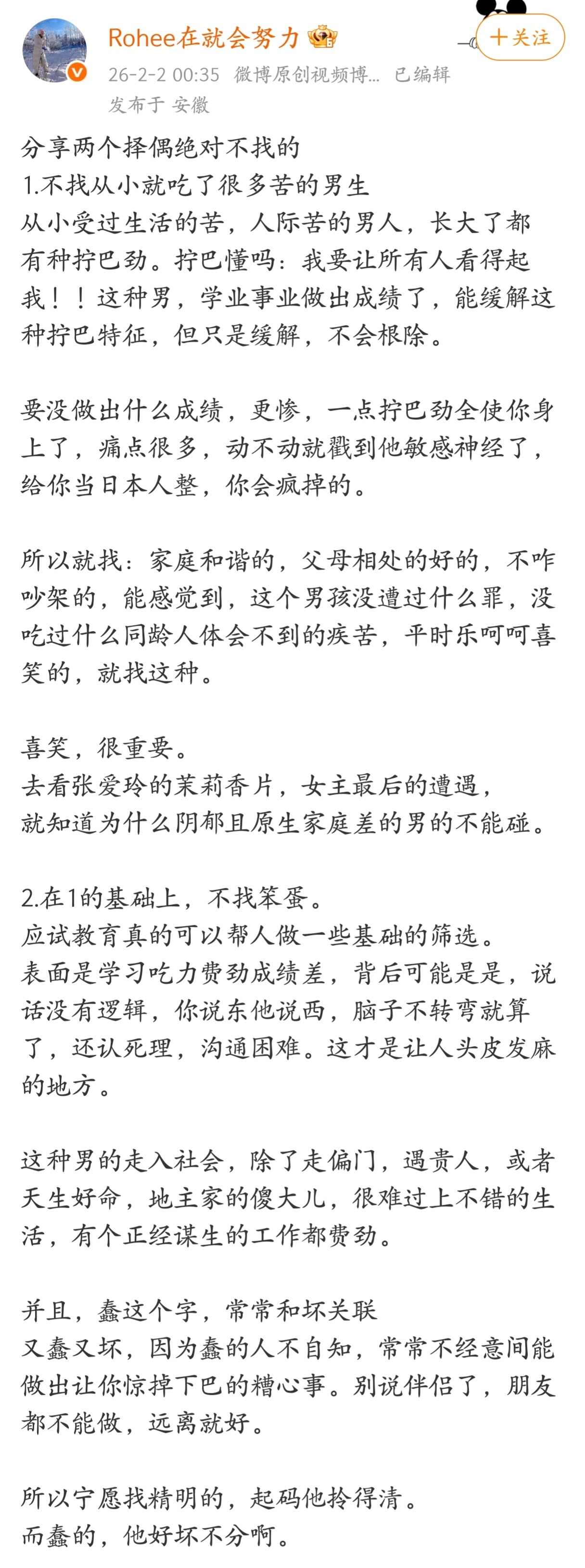 择偶绝对不能找从小就吃了很多苦的男生。