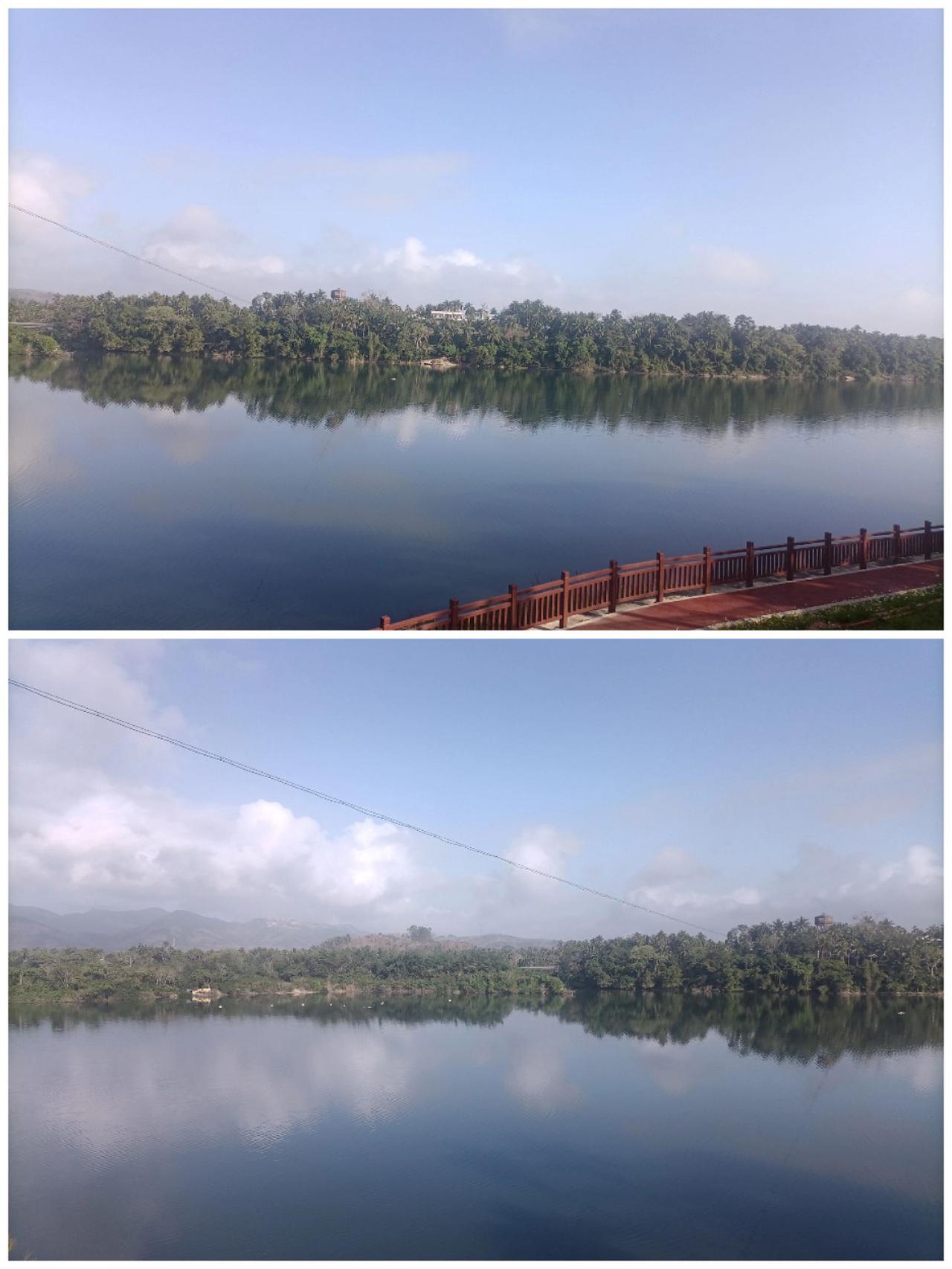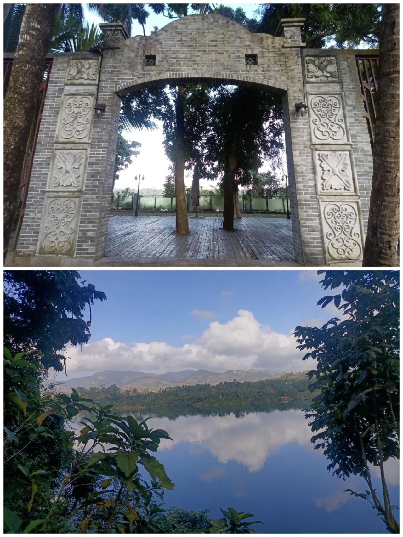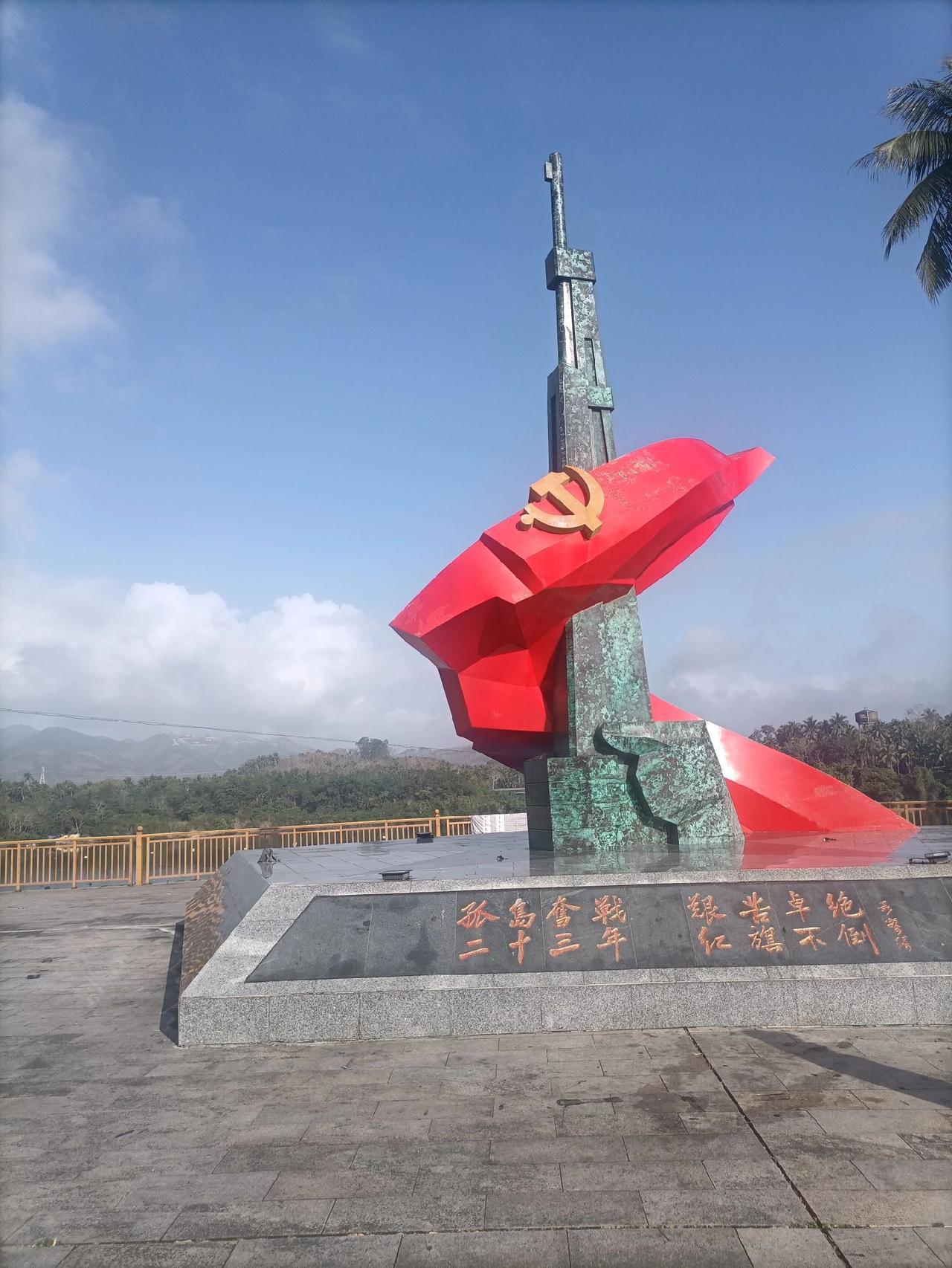琼海红色娘子军雕像(图1-2),栩栩如生。椰子寨战斗遗址,也就是红色椰子寨-大门和古屋(图3),我记得1960年拍的电影《红色娘子军》也在椰子寨。这个是战斗实战遗址(图4),这个石门感觉在电影红色娘子军中见过(图5上),后面的湖景相当美(图5上-8)。寨子里的村庙(图9)。
