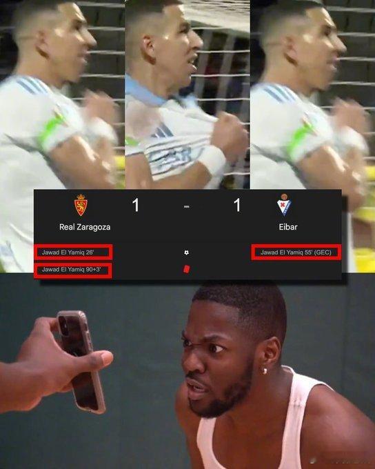 【全场目光向我看齐!】33岁的萨拉戈萨新援亚米克(Jawad El Yamiq)在对埃瓦尔的首秀中,第26分钟破门得分,第55分钟打入乌龙球,本场比赛的两粒进球均出自他,然后第93分钟吃到红牌,完成了精彩的个人全场秀!