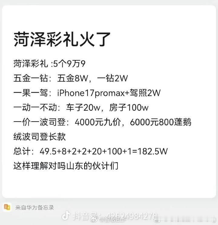 结婚需要多少钱在别人评论区看到这个图作为山东人我对山东行情那是一点都不知道啊但我觉得这图里的有点夸张了结个婚为什么还得算上驾照,羽绒服这是啥说法啊?等过年回去我好好跟小伙伴打听打听