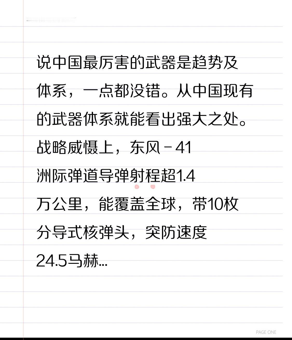说中国最厉害的武器是趋势及体系,一点都没错。从中国现有的武器体系就能看出强大之处。 战略威慑上,东风 - 41洲际弹道导弹射程超1.4万公里,能覆盖全球,带10枚分导式核弹头,突防速度24.5马赫,反导系统难拦截。096型战略核潜艇配巨浪 - 3潜射导弹,射程超1万公里,隐蔽性强,是二次核反击核心。 海空作战里,歼 - 20雷达反射面积仅0.01平方米,配霹雳 - 15射程200公里,能穿透防空精确打击。055型驱逐舰有112单元垂发,双波段雷达,是“全能战舰”。这种体系化发展,紧跟趋势,让中国在军事领域实力强劲。