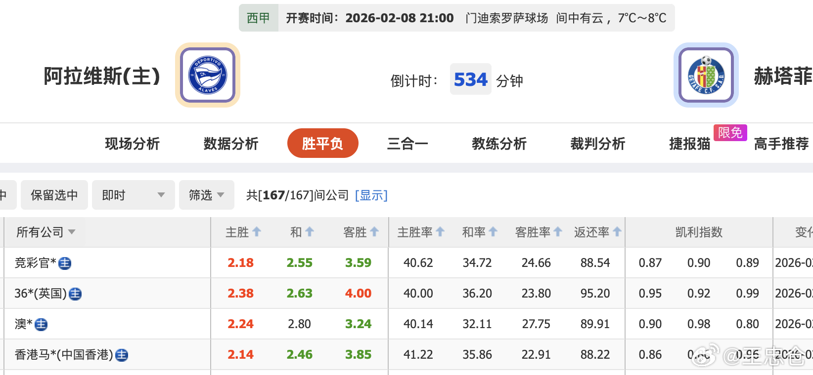 西甲阿拉维斯VS赫塔菲 联赛里出这么低的平赔,不多见吧?