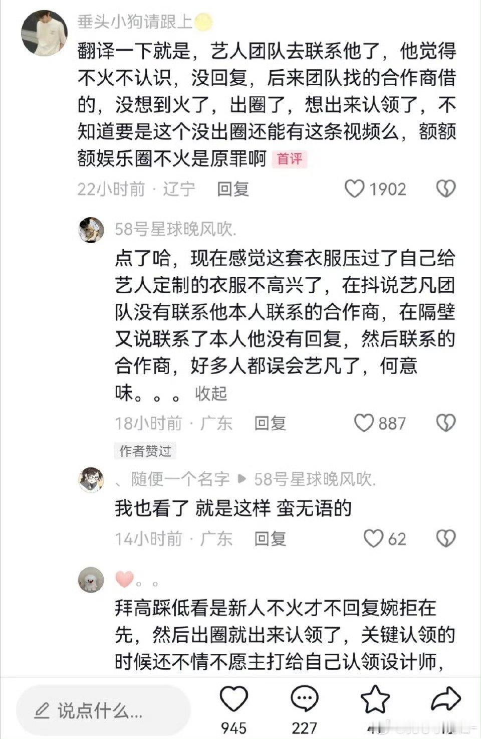 张艺凡微博之夜穿那个衣服在抖热度超级高,设计师出来说没经过他同意穿了衣服 张艺凡团队是从合作商借的