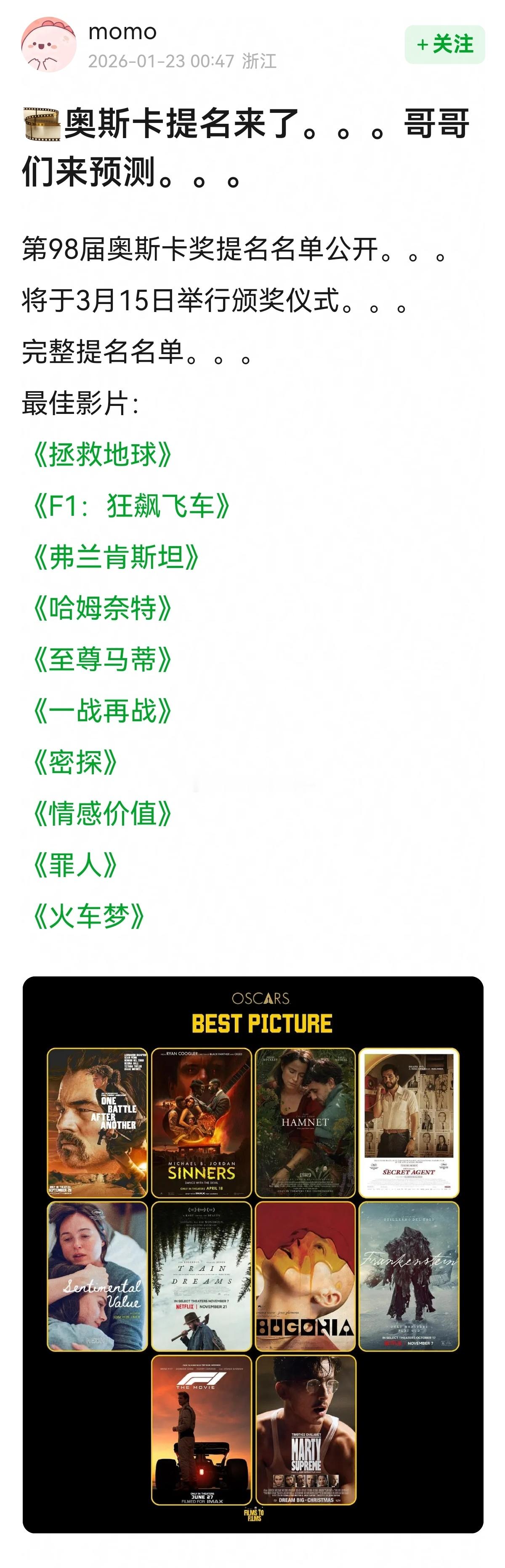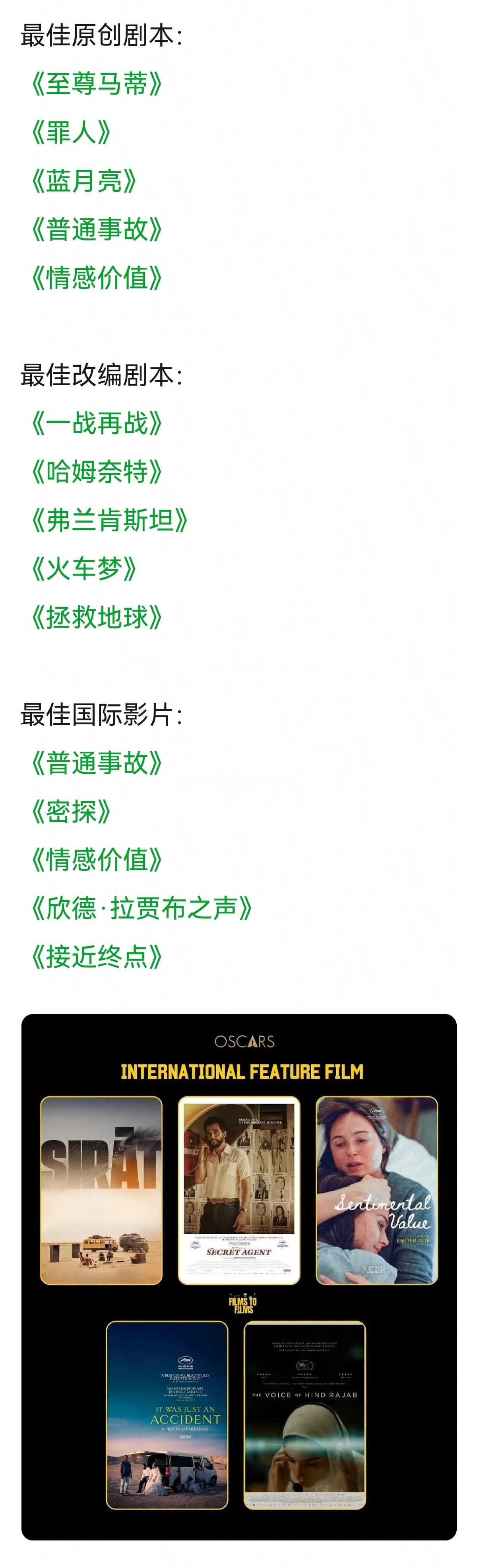 奥斯卡提名来了~🎦🎦